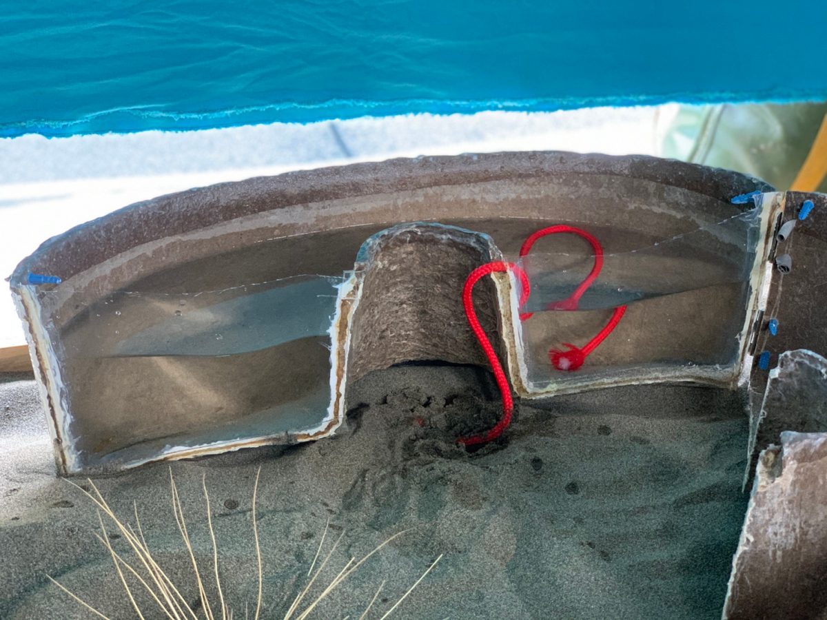 「鹽分問題還有季風問題都還算好解決,可以透過挑選耐鹽分、耐強風的樹種,例如台灣土沉香、欖李、檉柳都很耐鹽分;木麻黃、林投則很耐強風。但水的問題,可不是派人開澆水車去澆水就好,那些水無法真正被樹木根部吸收,反而都浪費掉。因此,我們與社會企業仁舟淨塑合作,花了一年時間,研發出『水寶盆』,可以有效儲存水分供給給樹木。」