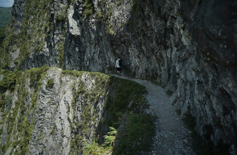 僅限一人通行的古道,走起來真的很驚險,如遇到迎面而來的山友,切記在遠處事先溝通禮讓,以免不小心墜落斷崖發生憾事。