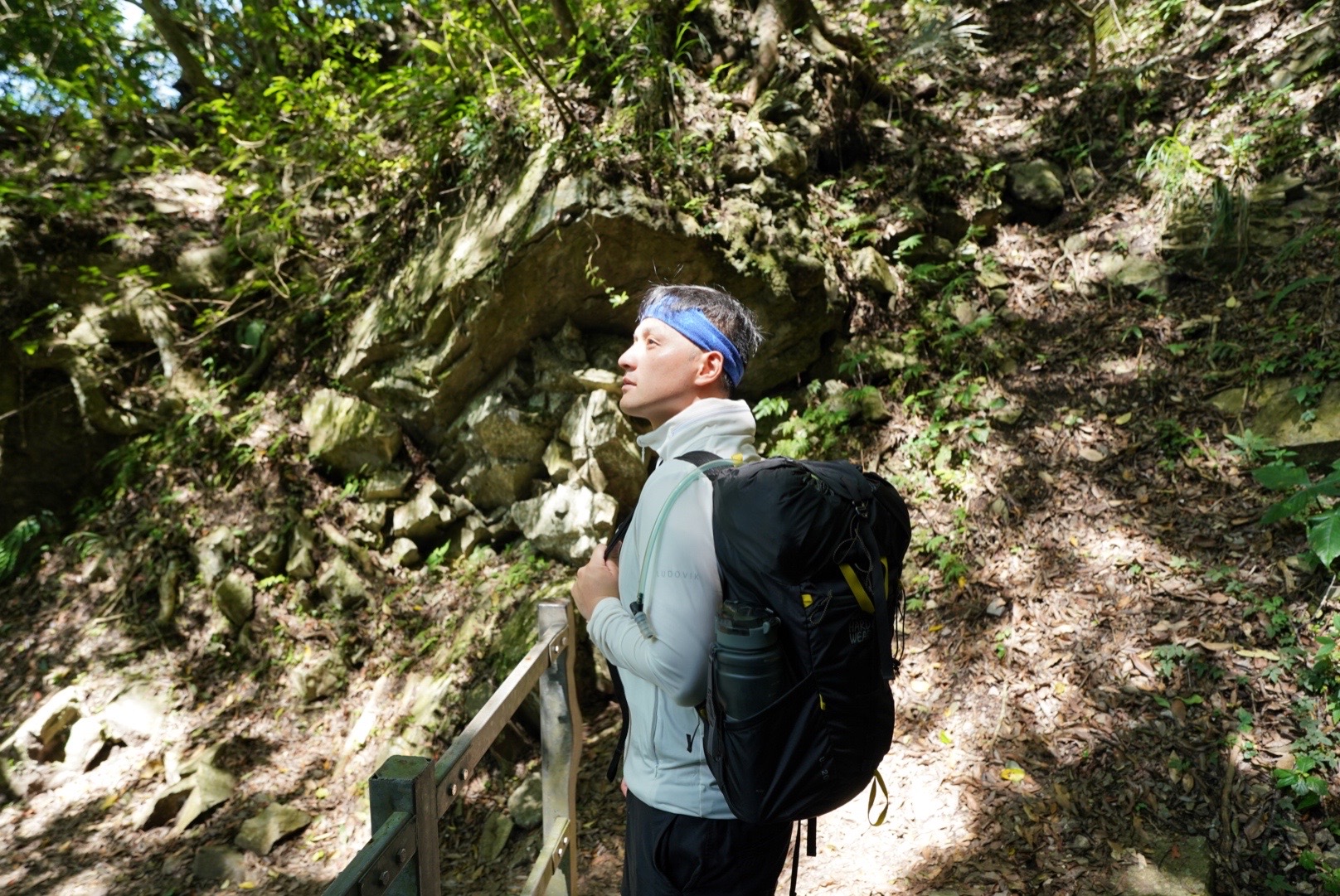 也選擇在這裡測試 Mountain Hardwear UL™ 20L Backpack 背負系統,在越野跑中的背負感受,實測奔跑時,胸前繫帶穩固,背包也可緊貼背部,背包不易晃動。