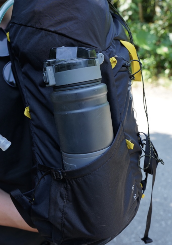 背包最大容量為 20 公升,可以裝下一整天單攻所需的裝備,此次,我在背包放入攝影器材、雨衣褲、行進糧、水袋之後,還有非常大的空間可以放置物品。如果是輕量化玩家,甚至能用這個背包完成兩天一夜露營。
