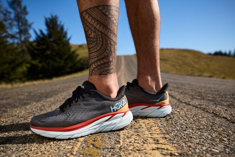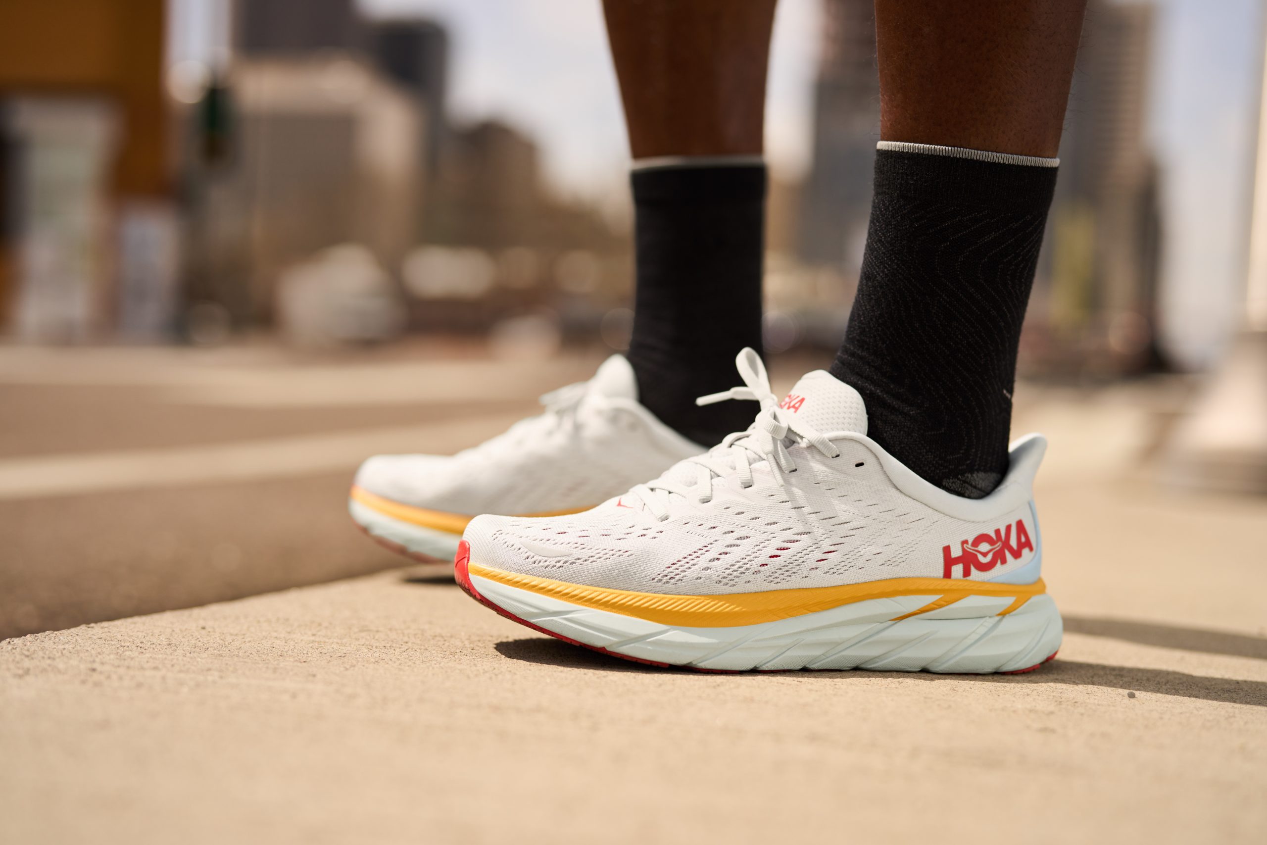 ▲ HOKA CLIFTON 8 相較前一代加大的後跟面積設計創造落地穩定性、緩震 EVA 中底減 輕 15% 重量與 Meta-Rocker 設計讓步態轉換更輕盈。售價:NT$4,580