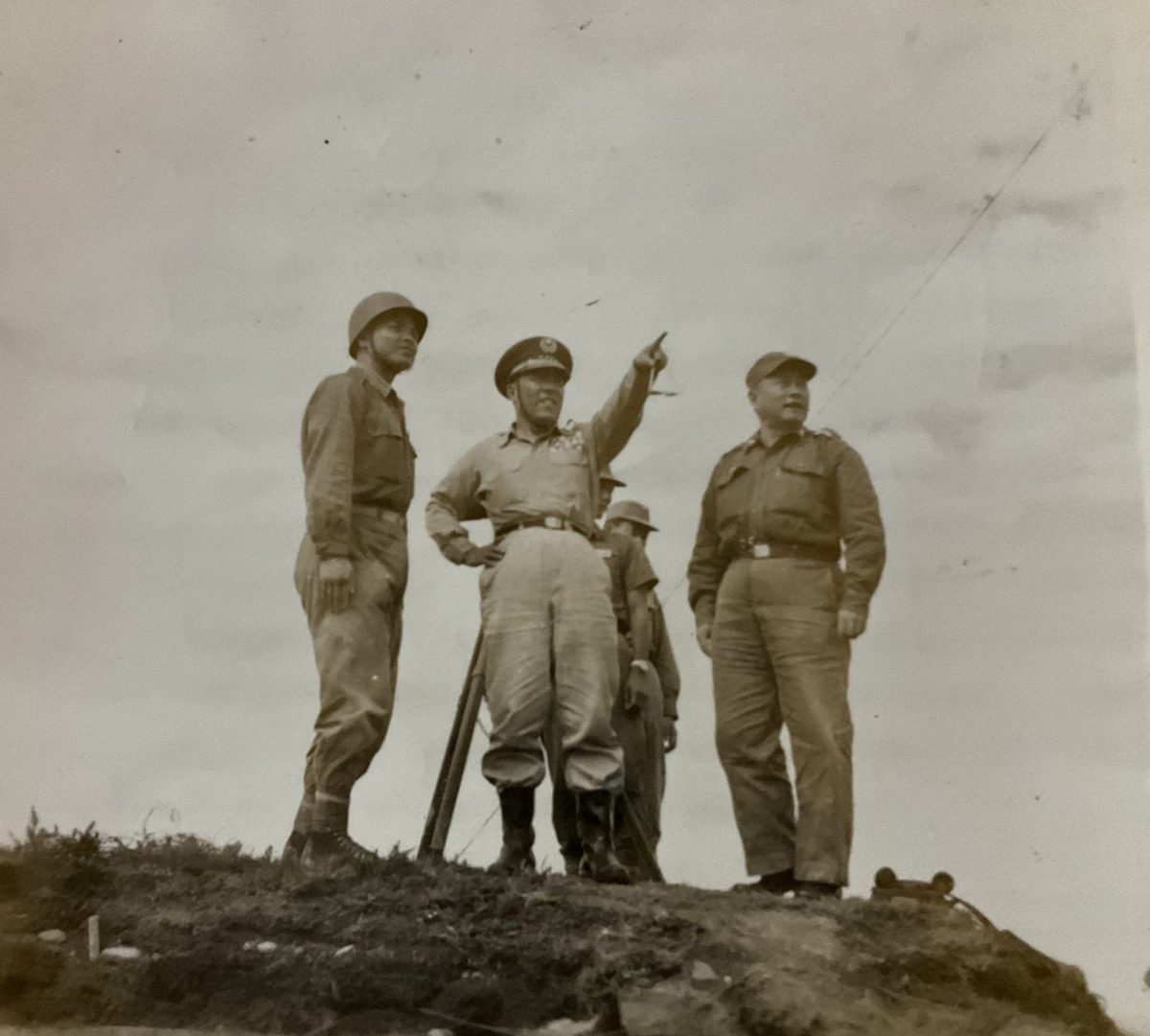 ▲六十幾年前參謀總長、東引指揮官和大隊長在六號高地。