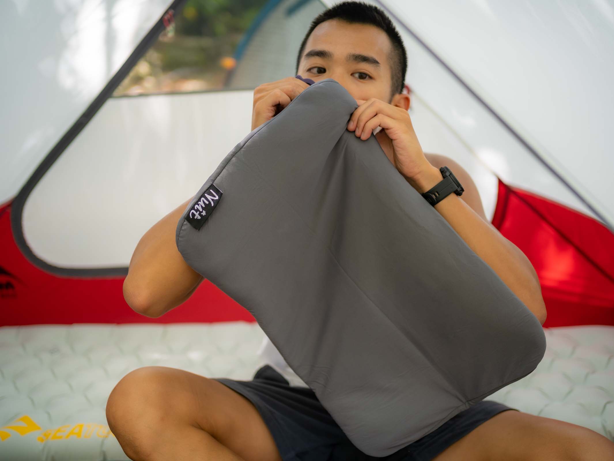 台灣在地寢具品牌 Darphia 朵法亞,推出的露營枕頭,是本文五款露營枕頭中,體積和重量之最,但擁有 28 顆獨立筒,只能說跟前面四款在不同量級,貼心的雙面設計,夏季面採用透氣網布,冬季面採用天絲針織柔布,因應台灣多變的天氣,但要將枕頭壓縮至最小,會需要吸塵器或充氣幫浦,稍嫌不便,適合豪華露營或車泊玩家。