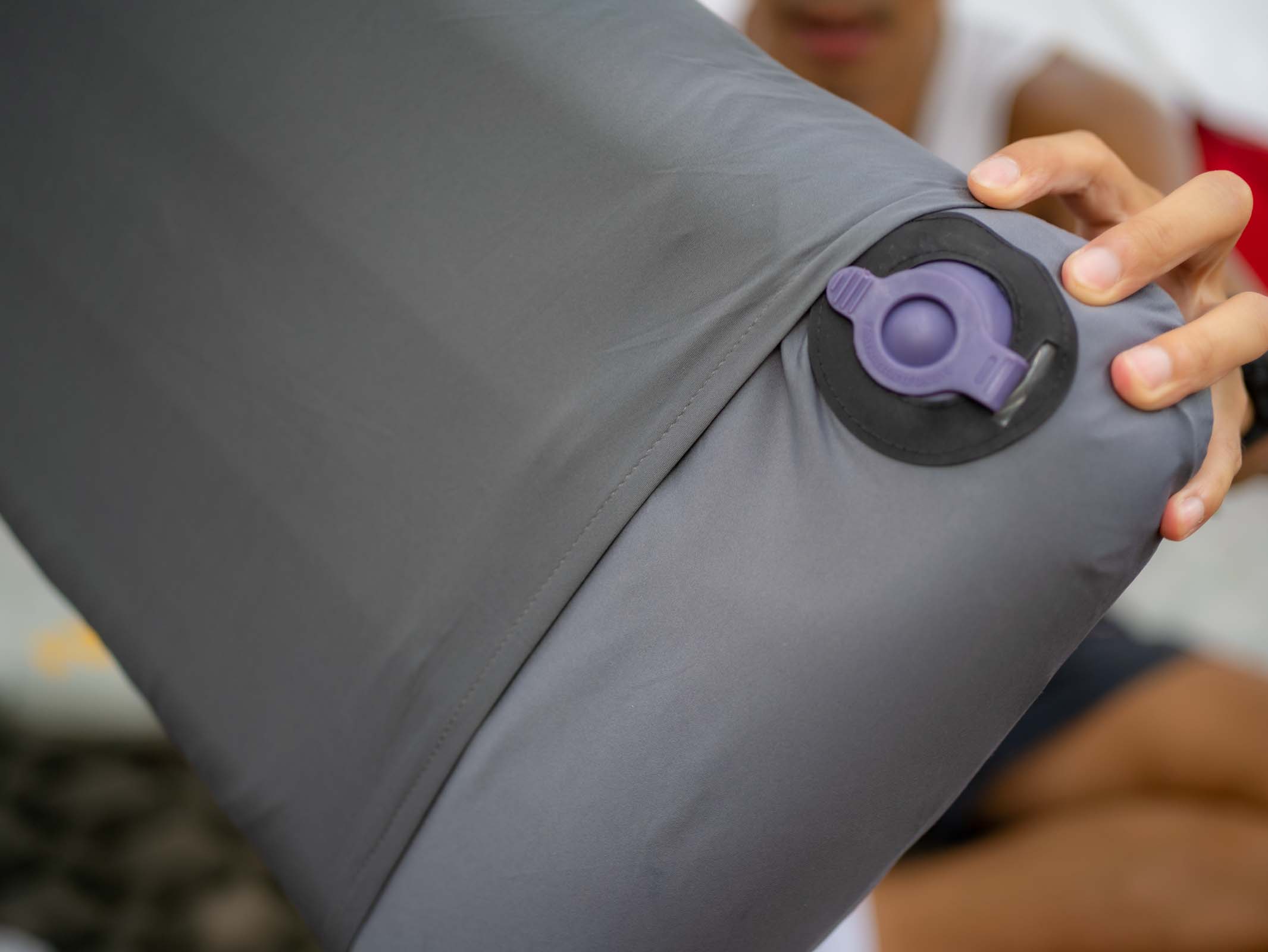 ▲ 迪卡儂充氣枕 FORCLAZ,是本文評測枕頭中最容易吹氣的款式。