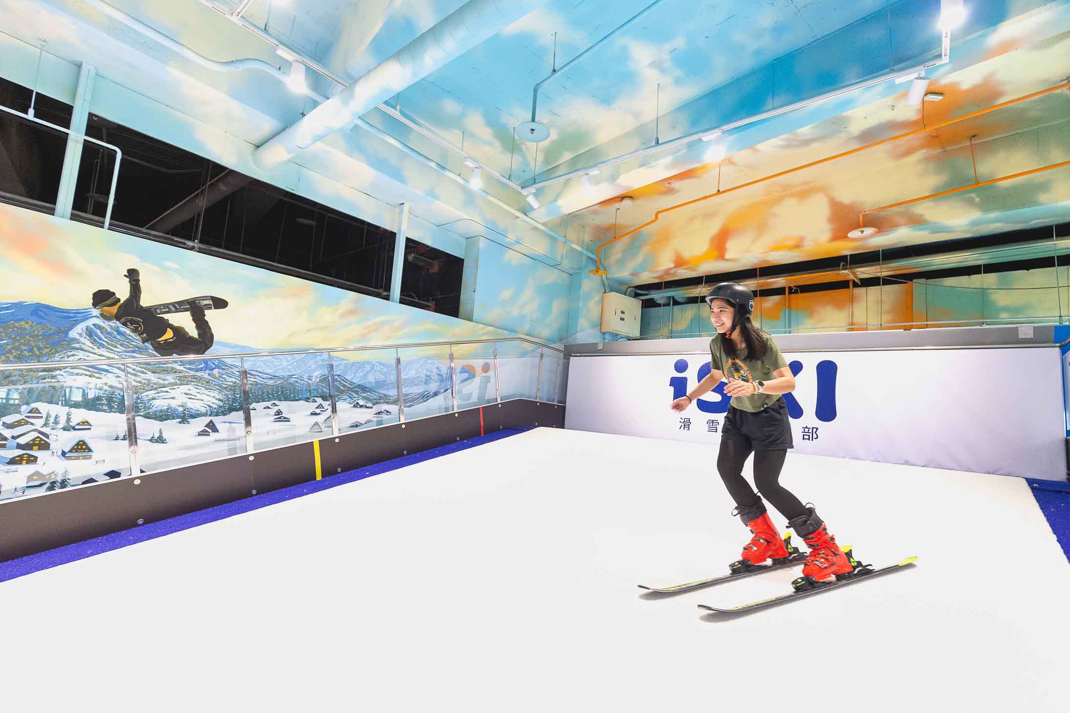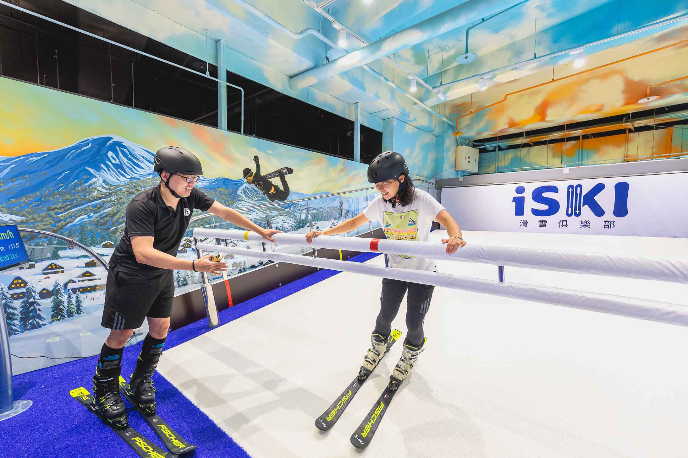 近年來從事滑雪運動的人口逐年增加,台灣在地理環境及氣候因素沒有天然的雪場,室內滑雪場就成了許多民眾接觸滑雪運動的第一步。iSKI 滑雪俱樂部獨家引進歐洲原裝進口的大型滑雪模擬機,在專業滑雪教練帶領下,學員即可透過模擬真雪般的雪毯進行滑雪課程,滑雪模擬機能調整坡度及速度,所以任何程度的滑雪玩家,在此皆能體驗滑雪樂趣、達成學習目標,做好出國滑雪前的訓練,等待可以出國後,就能飛出去站上滑雪場暢快滑行!