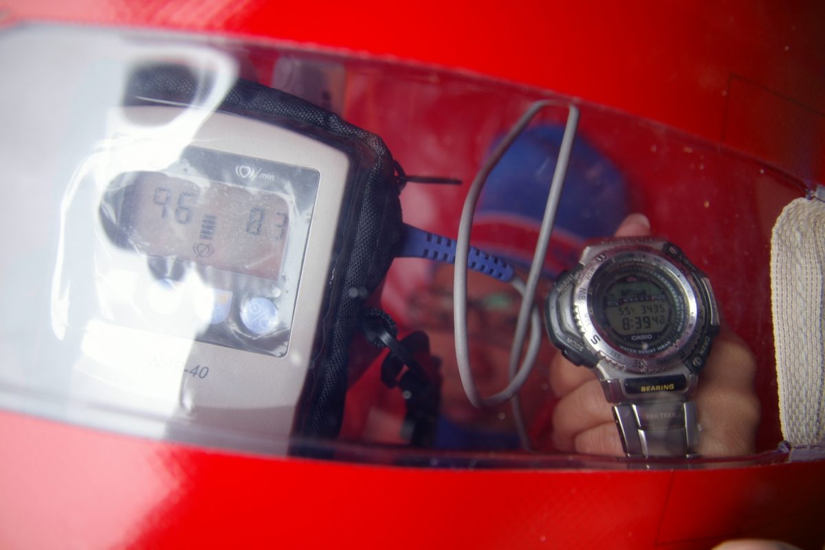 那是一個攜帶式加壓艙,置放在此處已一、兩年,如今竟派上了用場。阿義躺進去加壓艙不到半小時,血氧飽和度就從 62% 上升到 88%。接著在裏頭休息睡了4小時後,阿義已可自由行走,也不再氣喘吁吁。