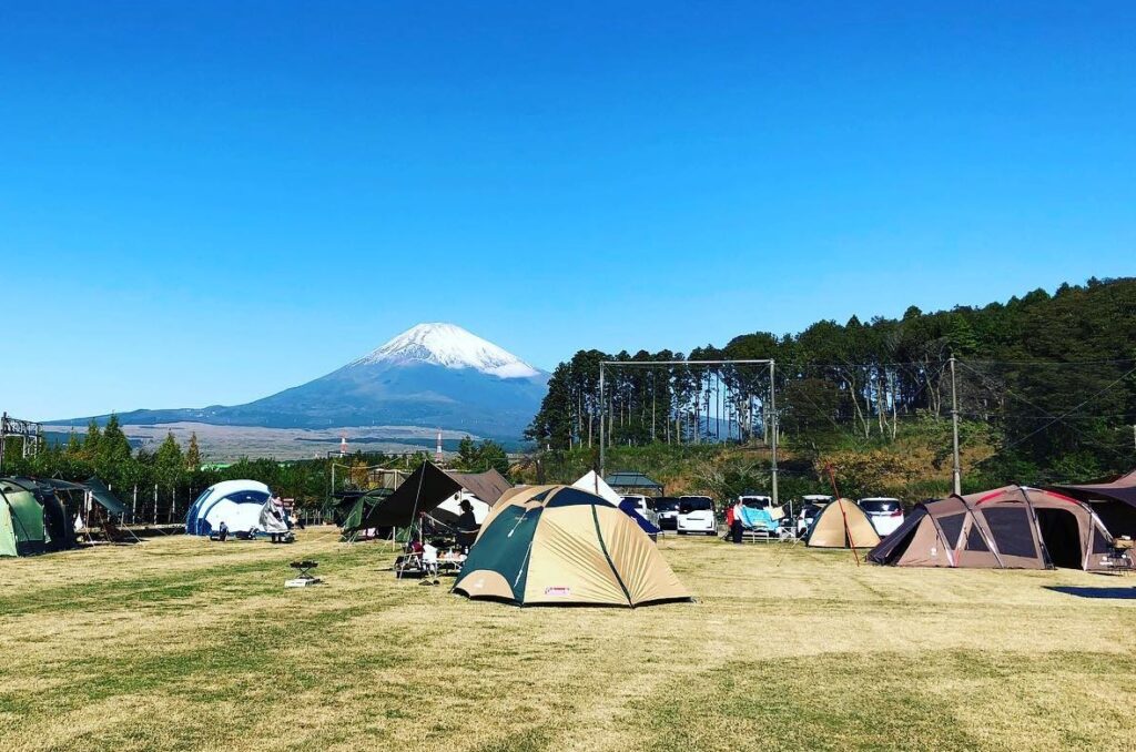 同樣位在朝霧高原的 Fumotoppara 露營區,彷彿沒有邊際的草原,開闊感十足,露營地隨處都能看到富士山!營區採線上預訂制,一樣是免費的營地,再加上是廣為人知的 GO OUT CAMP 的御用場地!早上 8:30 就開始辦理入住,建議提早入場喔!
