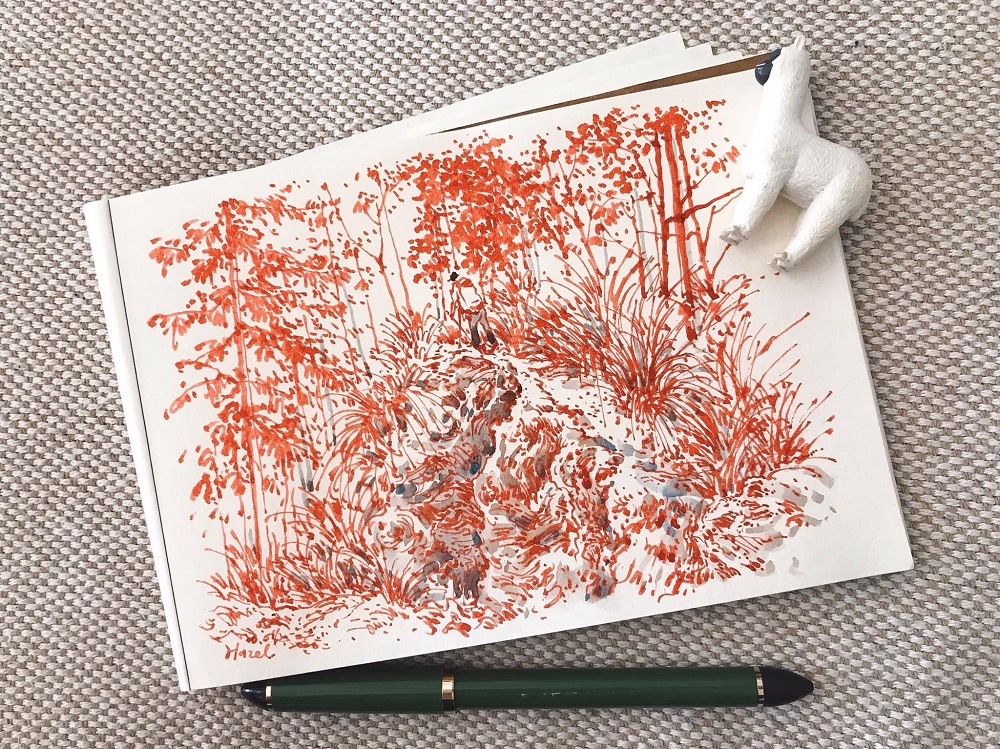 「拿鋼筆快速畫草稿的樣子很帥氣,也想要擺脫電腦繪圖按幾個鍵就可快速回到上一步一再塗改的壞習慣。」職業為平面設計師的鴨寶(Hazel),提起鋼筆速寫的原因,原來始於一個「帥」!