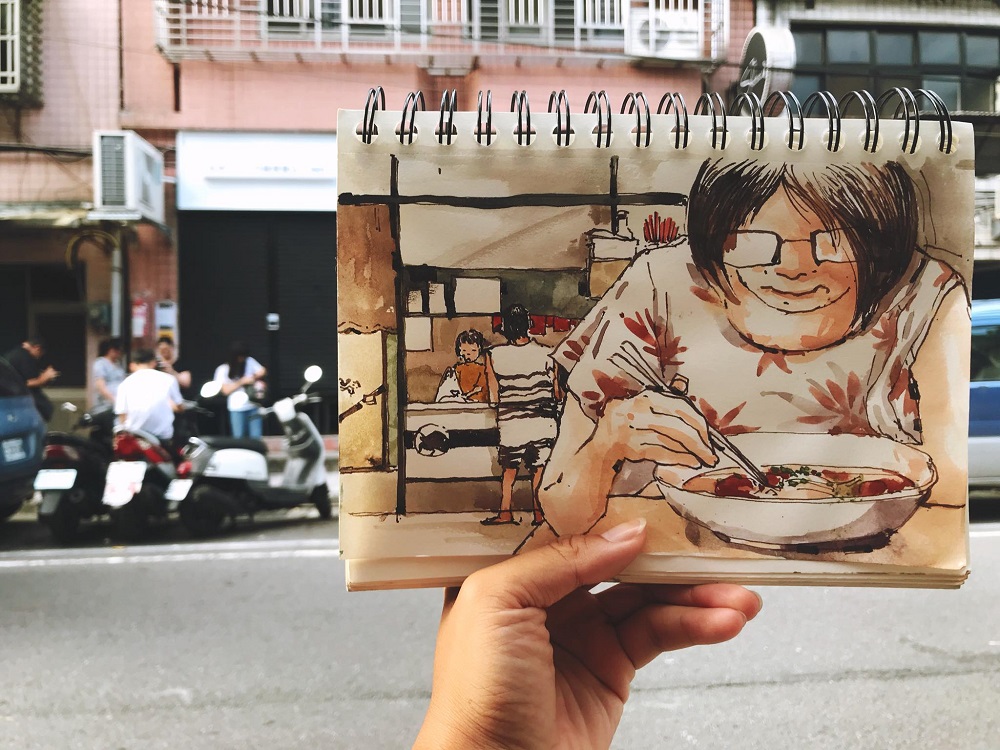 「一開始為了讓自己可以達到”看到什麼畫什麼”的境界,利用類似365天速寫計畫的方式,累積練習速寫的機會與手感,從生活中的細節找出有趣或可畫的事物,再搭配文字寫下當時的觀察與心情。」速寫對鴨寶而言,逐漸發展成如同寫日記般,記錄生活的一部份。