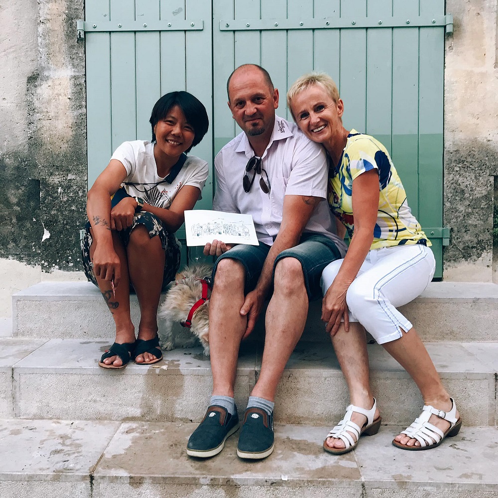 ▲與鴨寶買畫的奧地利夫妻