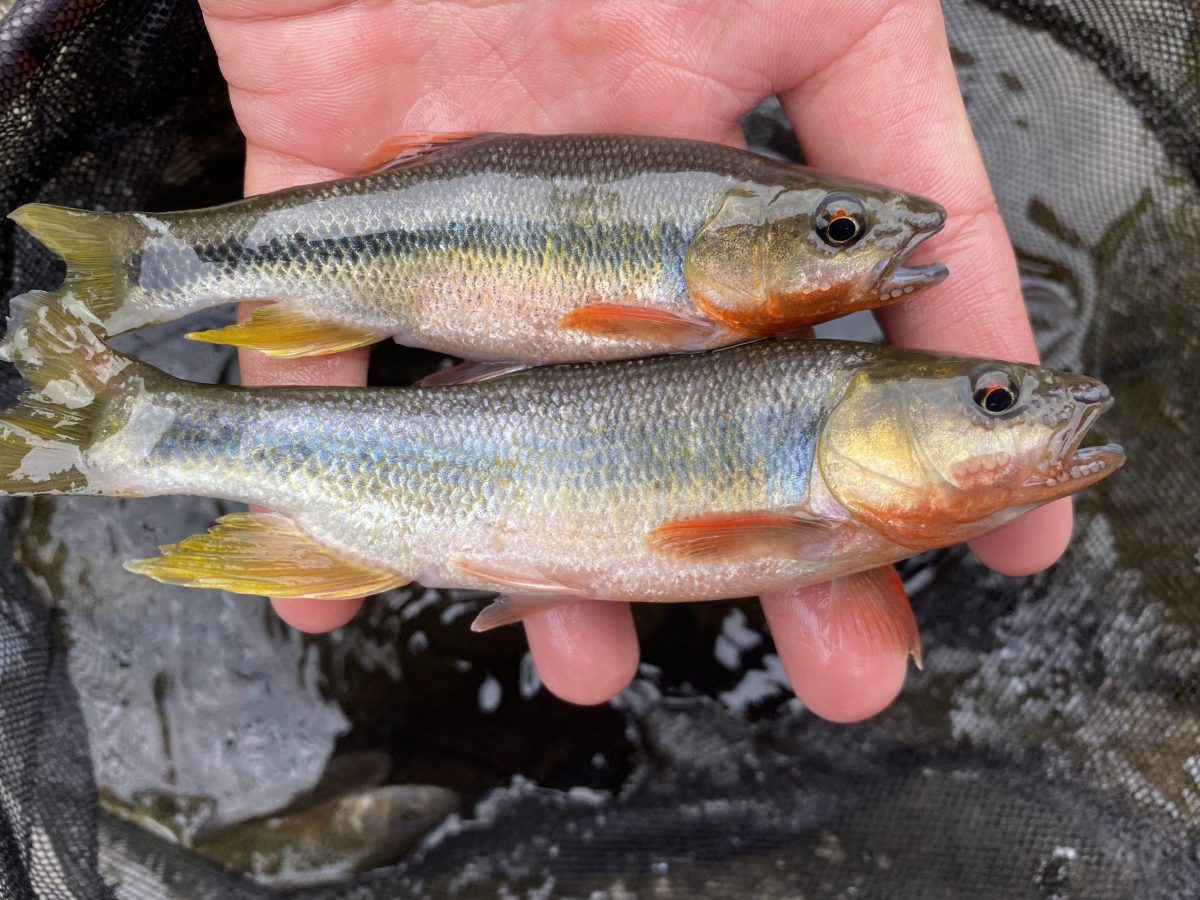 ??溪哥:分布於台灣西半部流域,以中北部較為常見。溪哥體型最大為16 公分,是溪釣最常見的魚種之一。此魚種也常用於料理,具經濟價值。