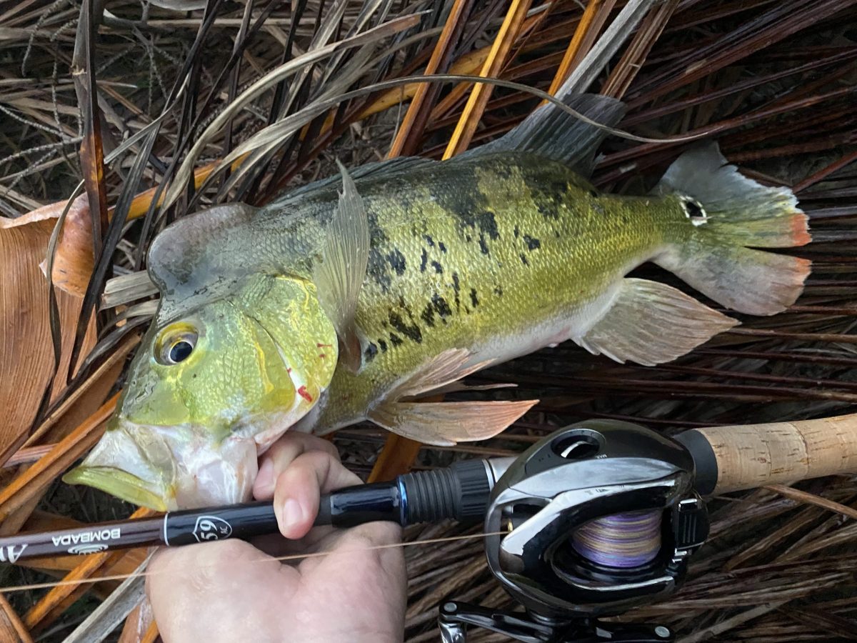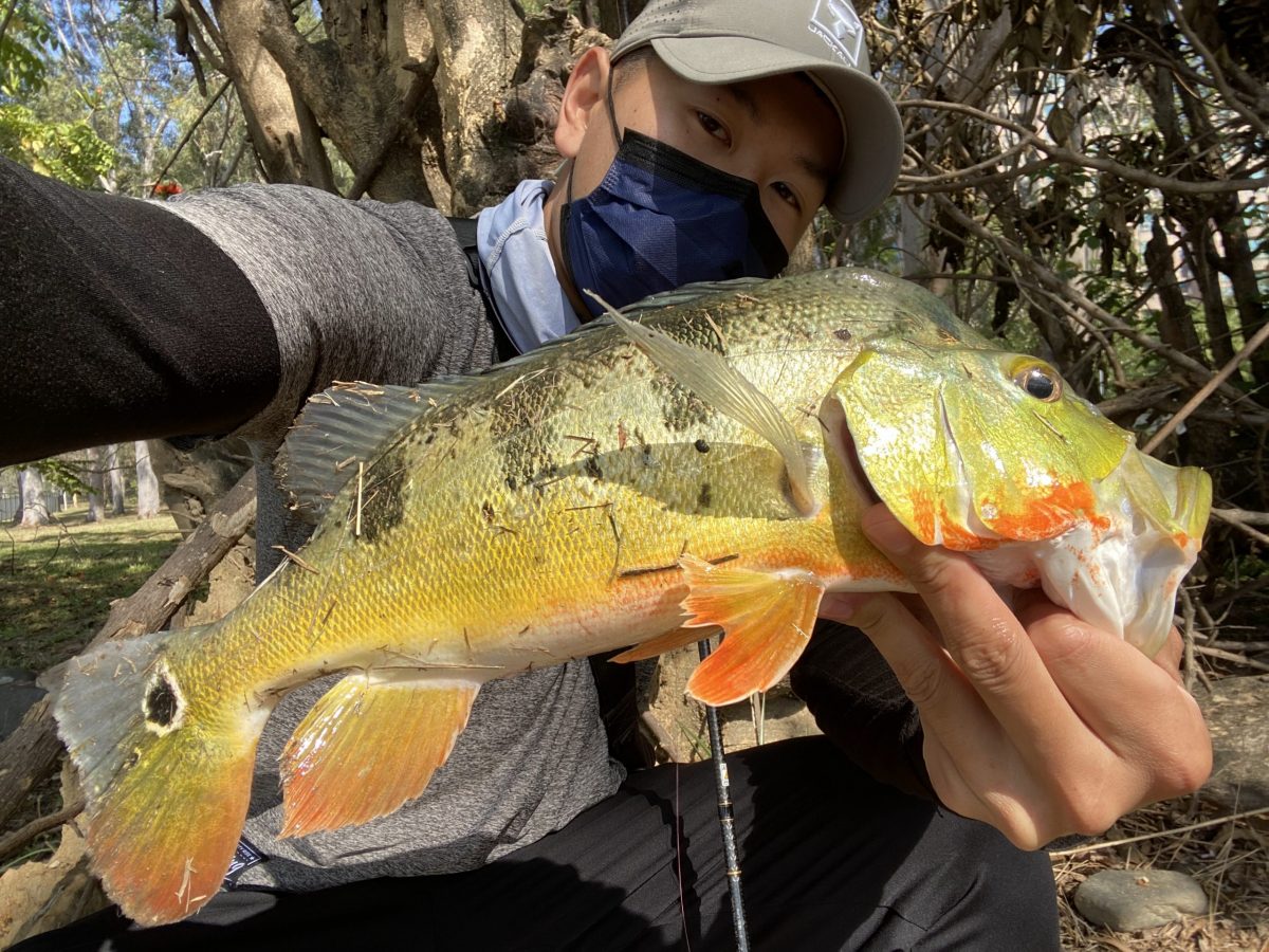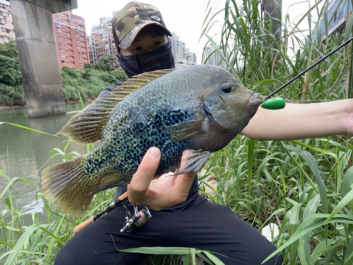 ??大口黑鱸: 原產於北美大陸,因引進養殖之故,現在在台灣算是常見魚種,北部的水庫、湖泊、埤塘、甚至溪流都有發現族群。 主要棲息在水溫較暖的湖泊與池塘淺水處,或水流緩慢的溪流,生性兇猛,以魚、蝦、蟹及其他無脊椎動物為食。最大體長可達50公分,一般成熟體型在25-35公分之間。