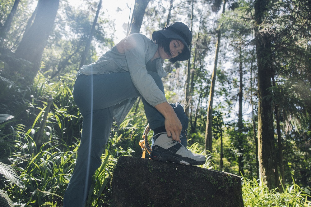 庭安也跟我們分享,很多女生會在意視覺上的身形比例,若上方穿著防風外套、鞋子穿高筒登山鞋,這時候如果再穿登山褲,可能會讓身材顯得五五身,「建議大家可以選擇像Haglofs Lite Slim 輕量快乾長褲比較服貼腿部,但又不是 legging 的褲子,有色塊的設計,也在視覺上更有顯瘦的效果。」有一件這樣的褲款,讓庭安更恣意安排戶外行程,輕鬆遊走在山與岩壁之間。