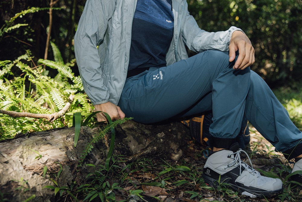 剛從歐洲返台不久的庭安,最讓他印象深刻的便是街上乾淨整潔的市容,第一眼看見Haglofs 褲款的外型設計,便直覺聯想到北歐簡約設計風格,這次穿著 Haglofs L.I.M Fuse 輕量快乾長褲及Lite Slim輕量快乾長褲,將褲款設計去蕪存菁,留下最需要的機能,材質上不論是百岳、平時中級山與郊山、露營活動、繩索工作都非常適合。以材質面而言,幾乎可以應付台灣的三季,也能符合長時間在戶外活動及工作的舒適度需求。