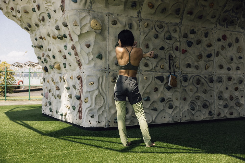 ▲褲款束口設計,不只讓搭配登山鞋時更俐落,穿岩鞋也適合;布料輕薄有彈性,可以適應攀岩的各種動作。