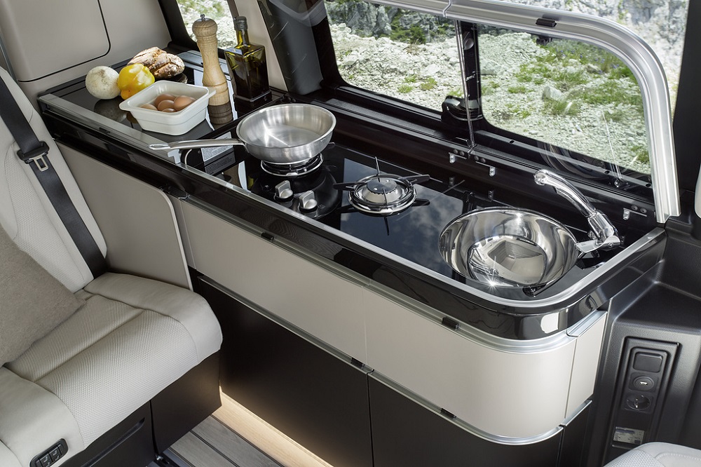 車室內座椅亦可電動調整臥躺角度,成為第二組睡眠空間,為多人旅行提供豪華舒適的休憩空間。而在長途旅行的中繼或紮營處,展開車側遮陽棚後,取出內置露營桌椅,就能享受戶外野餐。