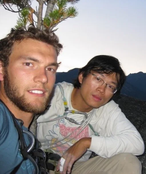 我在哥倫比亞省的 Kamloops 遇見了耀群。我們當時都有修湯普森河大學 (TRU) 的戶外探險嚮導課程。我想不到比這個更棒的相遇,那是我們搭擋緣分的開始,並因此成為了一輩子摯友。在多次的攀登之旅和日常生活相處之下,我們逐漸成為了登山夥伴和共患難的兄弟。在 TRU,耀群鍛鍊出豐富的山地技術、知識和經驗,這些歷練幫助奠定了他堅實的基礎,並讓他有了堅穩的基礎。 TRU 也是個建立了許多堅定友誼和關係的地方。 我和耀群也在那遇見 GT(格雷姆·泰勒),他向我們介紹了工業繩索作業,讓我們踏進了這個領域。從此耀群參與了許多繩索作業相關任務,包括加拿大廣場帆板更換、哥倫比亞體育館 ,甚至遠至中國的工作,耀群在那裡利用他的中文能力提高了工人的安全並即時翻譯協助溝通。他會利用自己的多國語言能力去打破語言、文化和山的的藩籬。