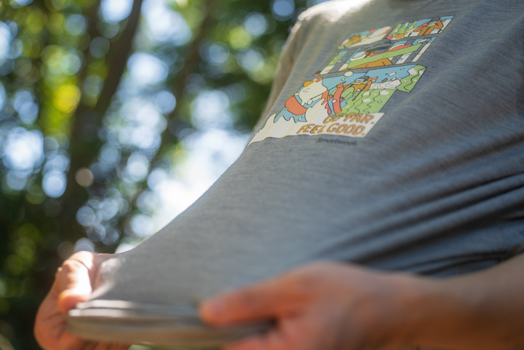 ▲ Smartwool 塗鴉 Tee,採用 56% 美麗諾羊毛、44% 聚酯纖維製成,親膚透氣且擁有足夠的彈性。