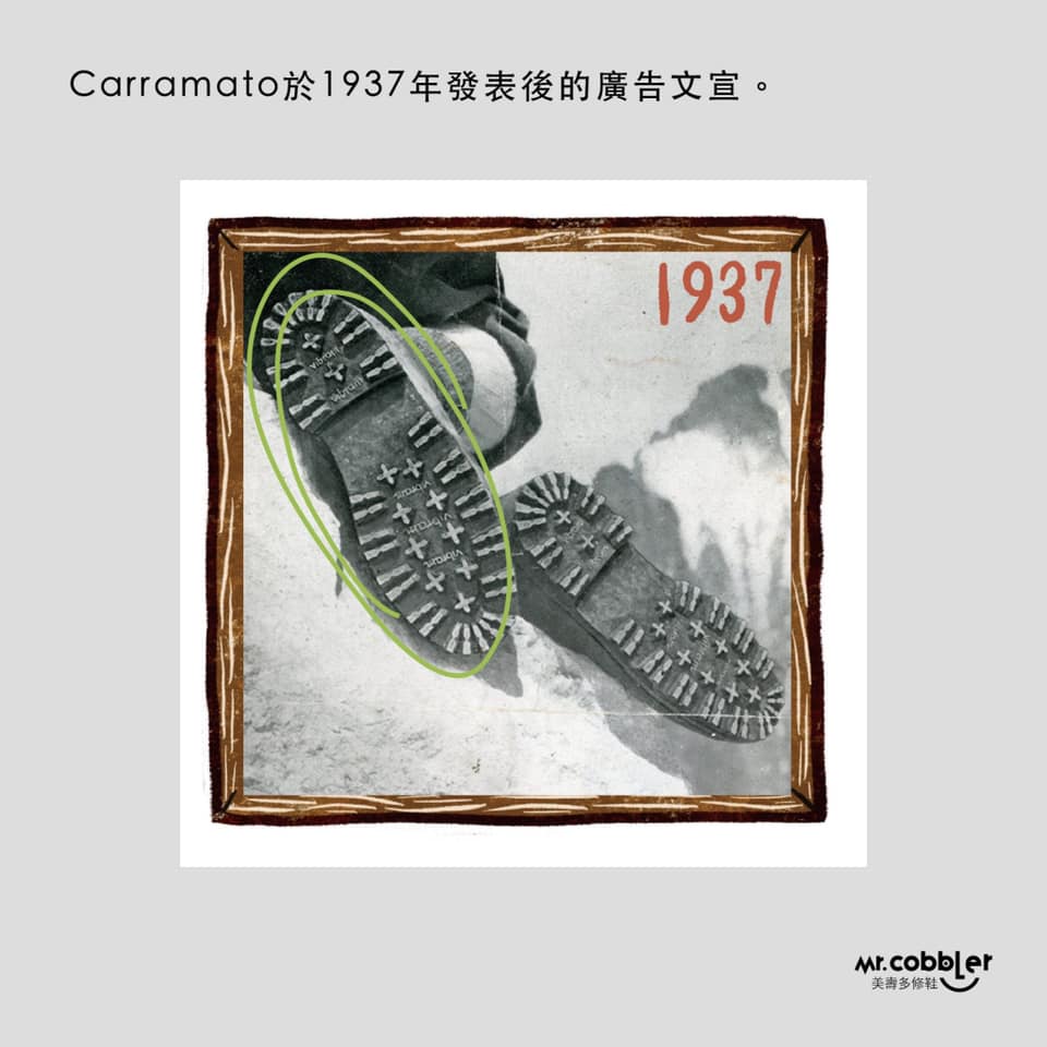 而說到發明的起源,其實有點沉重。Vitale Bramani 的六個朋友,在阿爾卑斯山登山時,不幸罹難。那時是 1935 年 9 月 15 日,據信,他們罹難的部分因素是「不適合的登山鞋履」。這讓 Vitale Bramani 起心動念,著手打造適合登山的鞋底。兩年後,他拿著世界上第一款橡膠鞋底申請到專利。當時他所發明的鞋底,有著非常優異的抓地力,而且很能抵抗磨損。