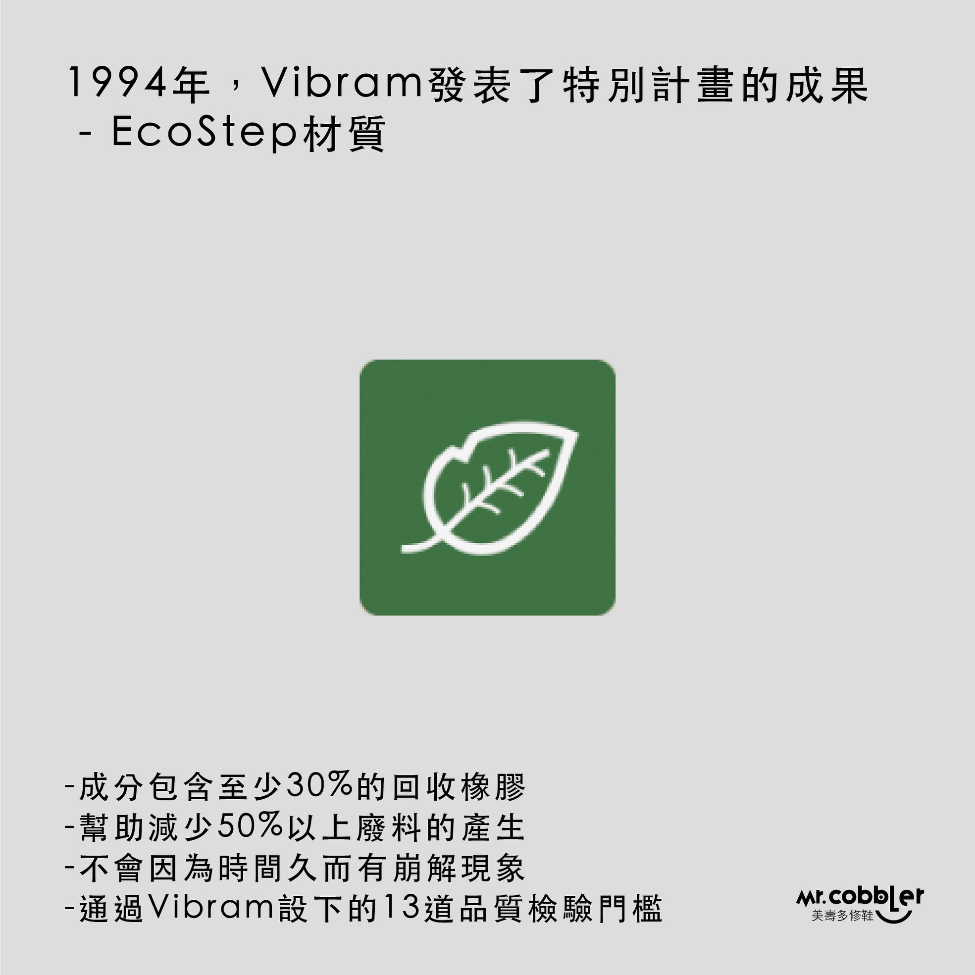 當所有戶外公司都積極朝向永續發展,Vibram 身為戶外鞋底最大品牌,自然不能缺席。Vibram 特別開闢了全新系列:Ecostep,大量採用天然或是再生材料、回收廢料製成,避免浪費也更親近自然。此系列的 Ecostep Natural,採用 90% 以上天然材料,不添加任何化學染劑,被用作五指鞋鞋底;Ecostep Pro 採用 30% 的回收材料製成,具有耐油、耐熱、抗撕裂的特色;Ecostep Recycle、Ecostep Recycle EVO 採用至少 30% Vibram 其他鞋底製造過程中剩餘的廢料,回收再加工,成為全新的鞋底。