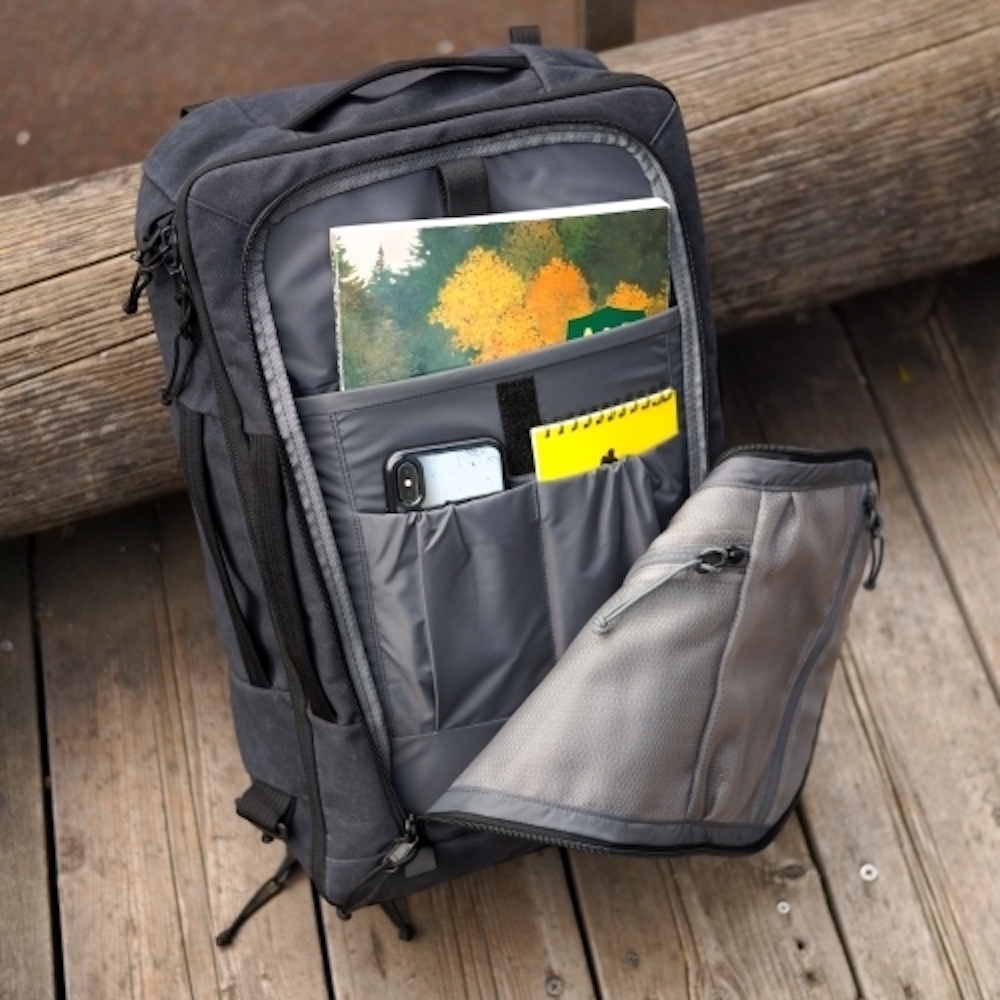 Mission Rover 包款底部擁有 1 個大口袋,可以置放鞋子及髒衣物,還有一個大的專用隔層,可放筆記型電腦等辦公用品。