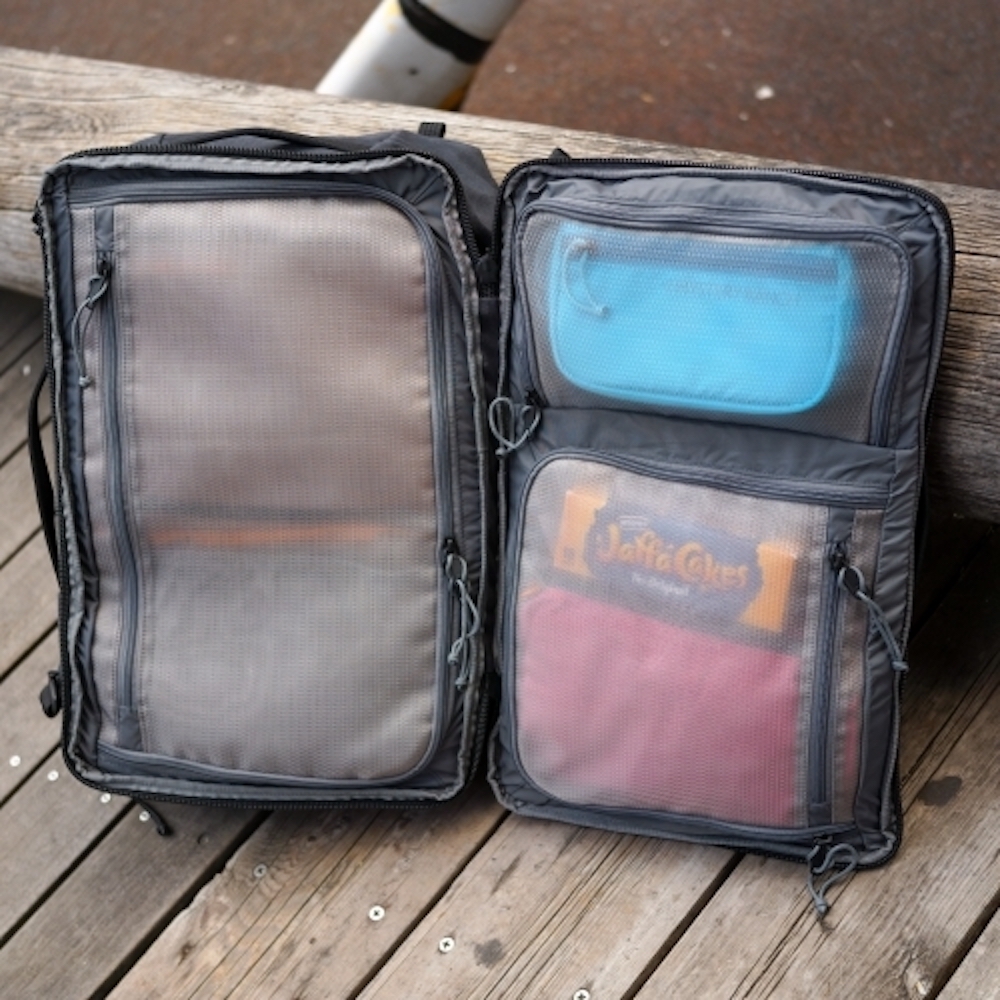 此外,為了方便收納,主袋的開口是以左右開闔的蚌殼式設計,每個隔層皆由網眼製成,利於迅速找到自己所需物品。