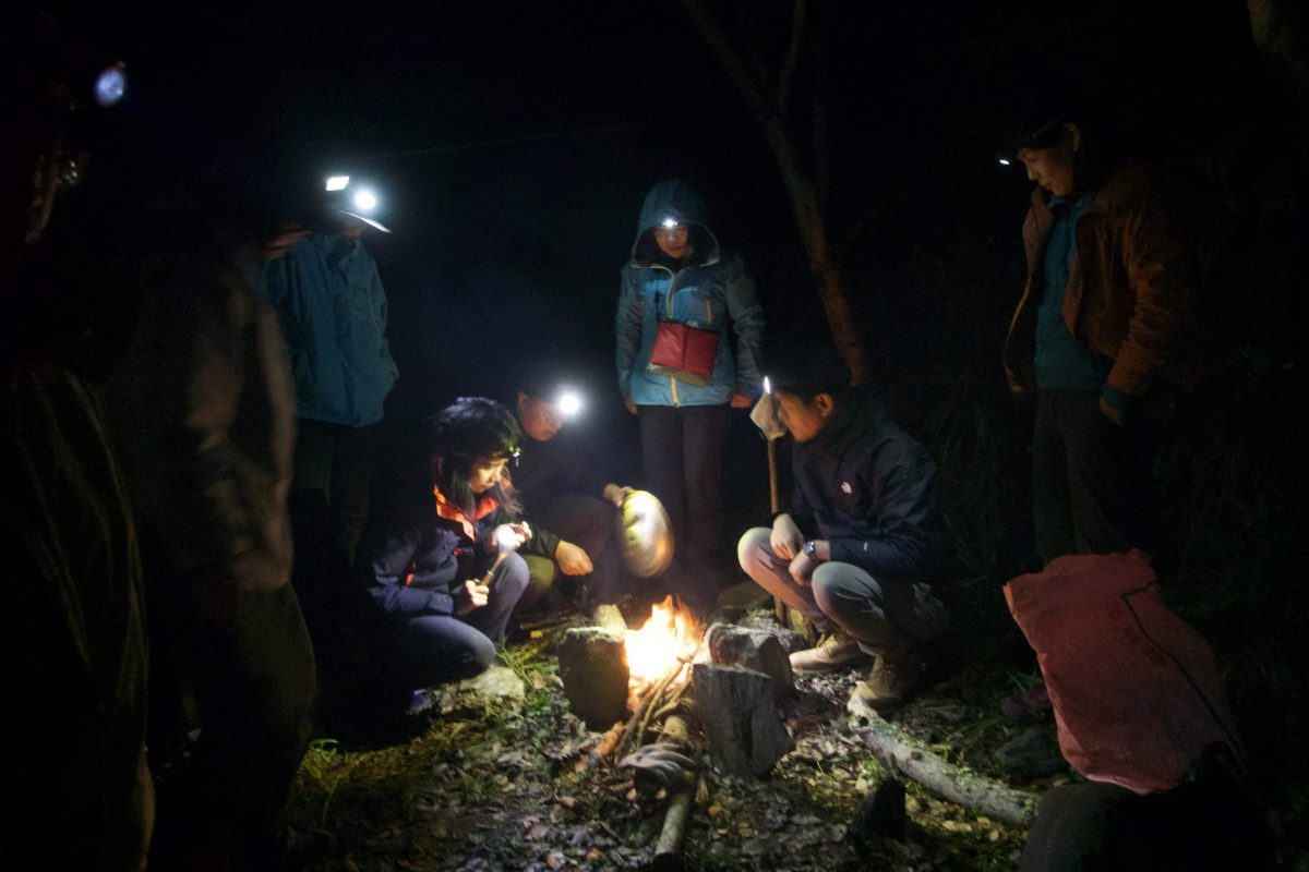 黃海欣絕望地看向山屋內,她甚至腦中開始盤算要怎樣才可以打電話叫直升機接她下山。這天剛好是她生日,友人們用心地在山屋外替她慶生,以柴火代替蠟燭,在搖曳的火光與雨聲中,迎接新的一歲。她哭笑不得接著說:「你知道我本來預想的不是這樣,我是想說可以上山很 chill 的跟朋友打牌、聊天的。」