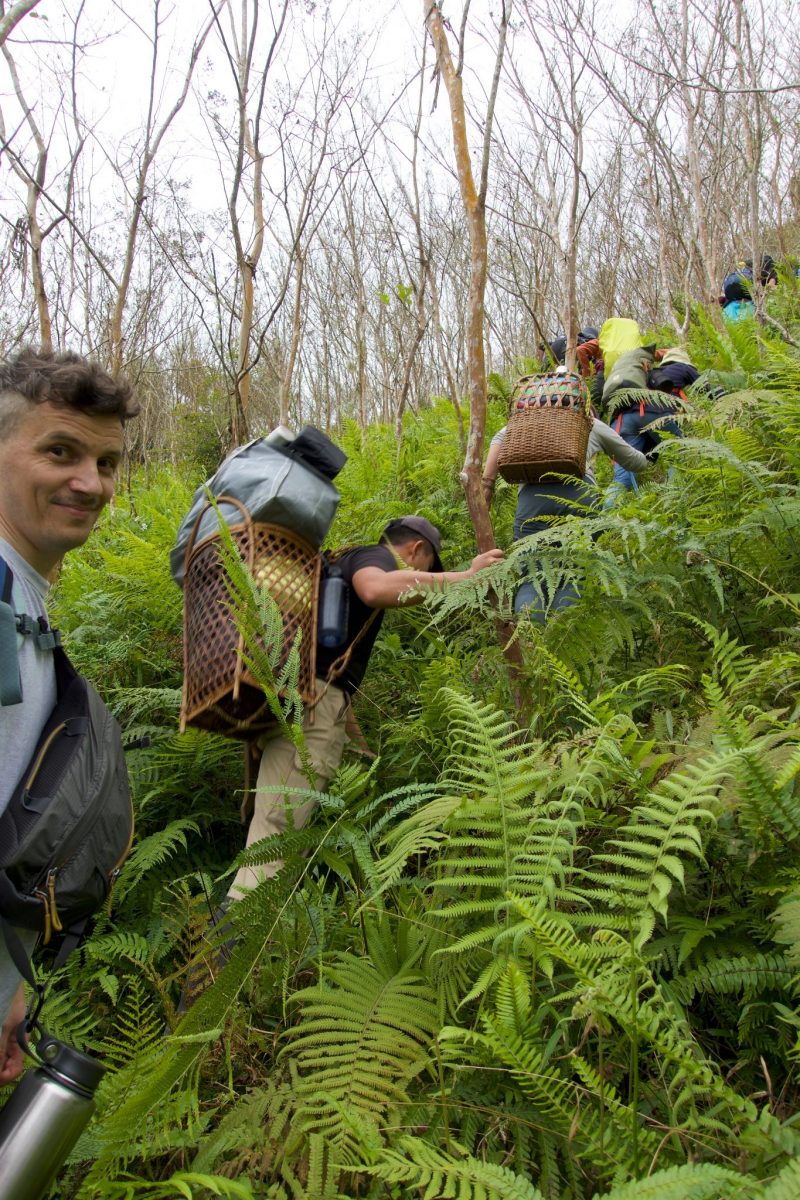 「我們相對於當地原民來說,已經是很格格不入的存在。但在我們一群人之中,還有一個更突兀的人。她全身上下都是極其昂貴的登山品牌,一副相當專業的氣勢。但她下山卻需要獵人一步一步教她找踩點,甚至最後腳抽筋,還是獵人揹她下山的。」
