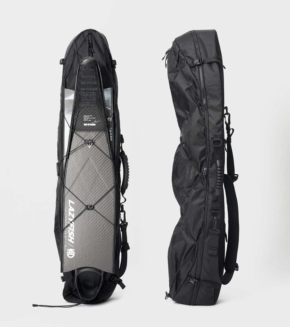 日前 LAZYFISH 也攜手次世代包袋配件品牌SEALSON打造出最符合潛水員使用的蛙鞋裝備袋,附有足夠收納兩雙長蛙鞋、潛水裝備、頸鉛的獨立隔層,以及外層3M反光彈力繩外掛系統,包體重量僅850g,且附有能夠托運的泡棉緩衝層,讓潛水員以最輕量且快速的打包方式踏上旅途。