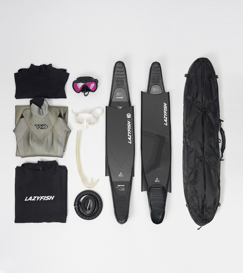 相信有在從事自由潛水運動的人一定對 LAZYFISH 並不陌生,LAZYFISH®創立於2018年,以專業為設計的出發點,透過衝浪板的設計原素中得到靈感,創新結合水上用動產品必備的彈性特質。採用複合式材料的獨特工藝技術,結合國際職業選手專業建議,如:全球排名第三的日籍選手—廣瀨花子、韓國國家紀錄創造的自由潛水選手SungSu (Ian) Kim等人,使用業界最高科技製成,秉持著產品能夠讓你踢得越慢,效率越高,像魚一樣在海中從容不迫。