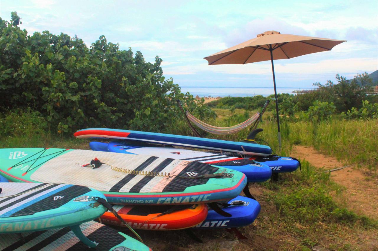 福隆離峰小屋,是 Let’s go play 毋設限創辦人 James 和 Kiya 改造老舊房子,一手打造出的基地。小屋外頭,幾頂陽傘和躺椅,坐在這就能遠眺北海岸和福隆沙灘,幾塊板子錯落在一旁,五顏六色如同他們精彩的SUP生活;一進屋內,牆上貼滿了他們在各地划 SUP 的照片,不難看出這佔據他們人生多重要的位置,而也是為什麼 2014 年 Let’s go play 毋設限成立,James 和 Kiya 希望把 SUP 的美好帶給更多的人。