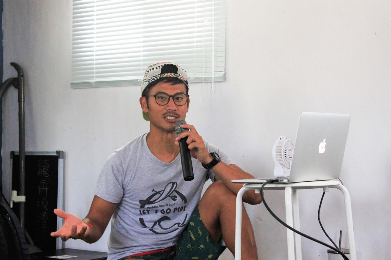 當天,在戶外講座中,James 傳達 SUP 的五個玩家階段理念,從體驗平靜水域到海洋巡航,從馬拉松競速、衝浪到專業玩家,加上 SUP 水上體適能、SUP 野餐露營休閒等等。