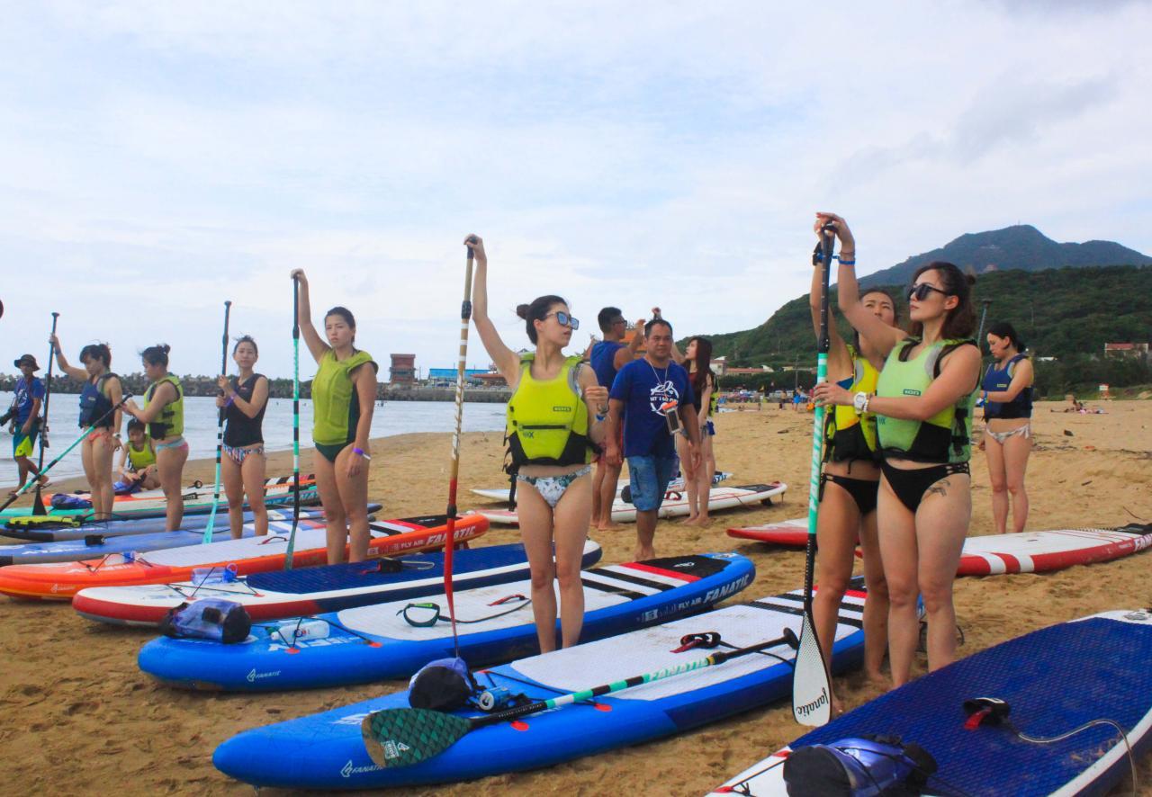 ▲實際體驗 SUP,有著專業教練陪同,大家都輕鬆駕馭,享受停留在水面上的寧靜悠閒。