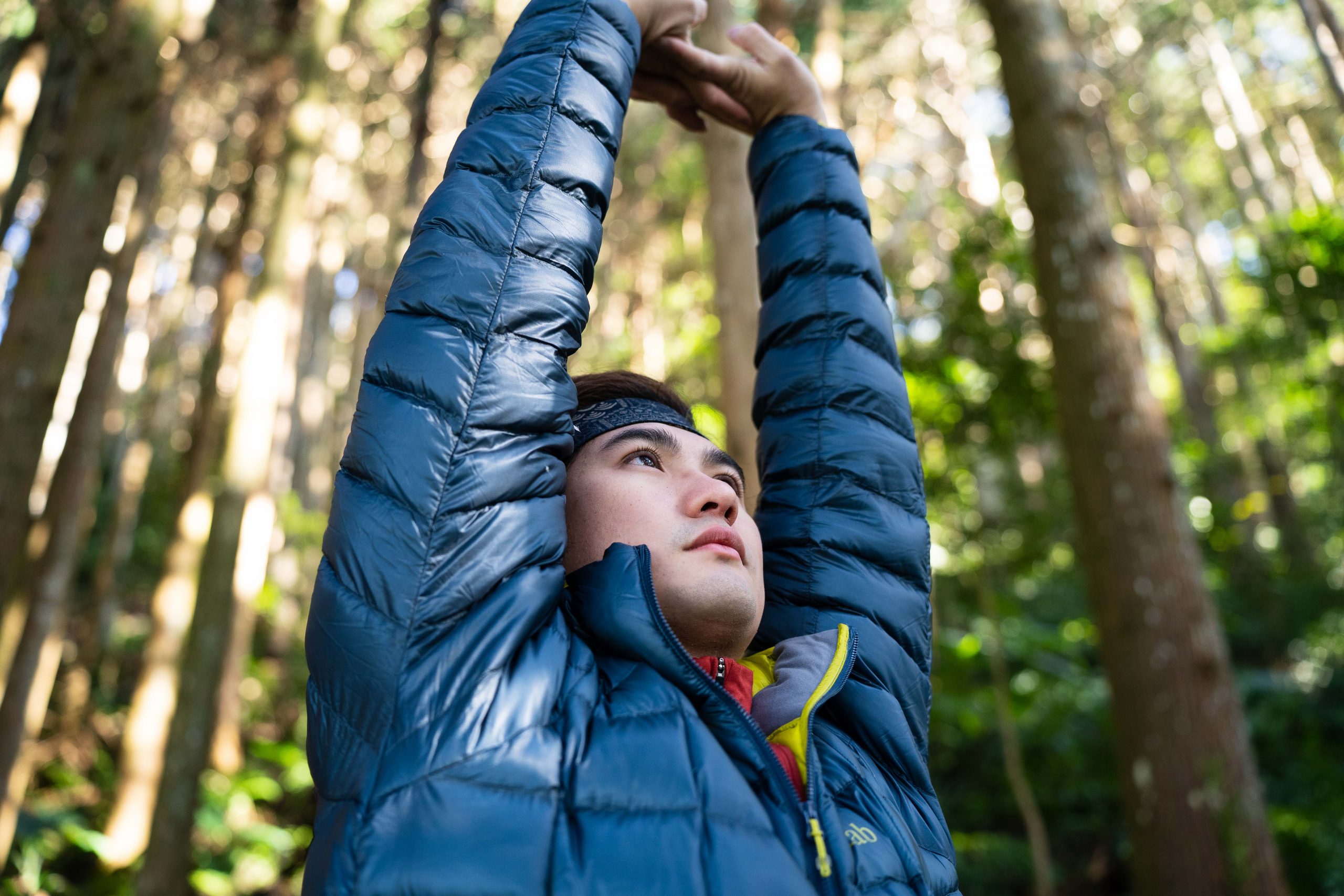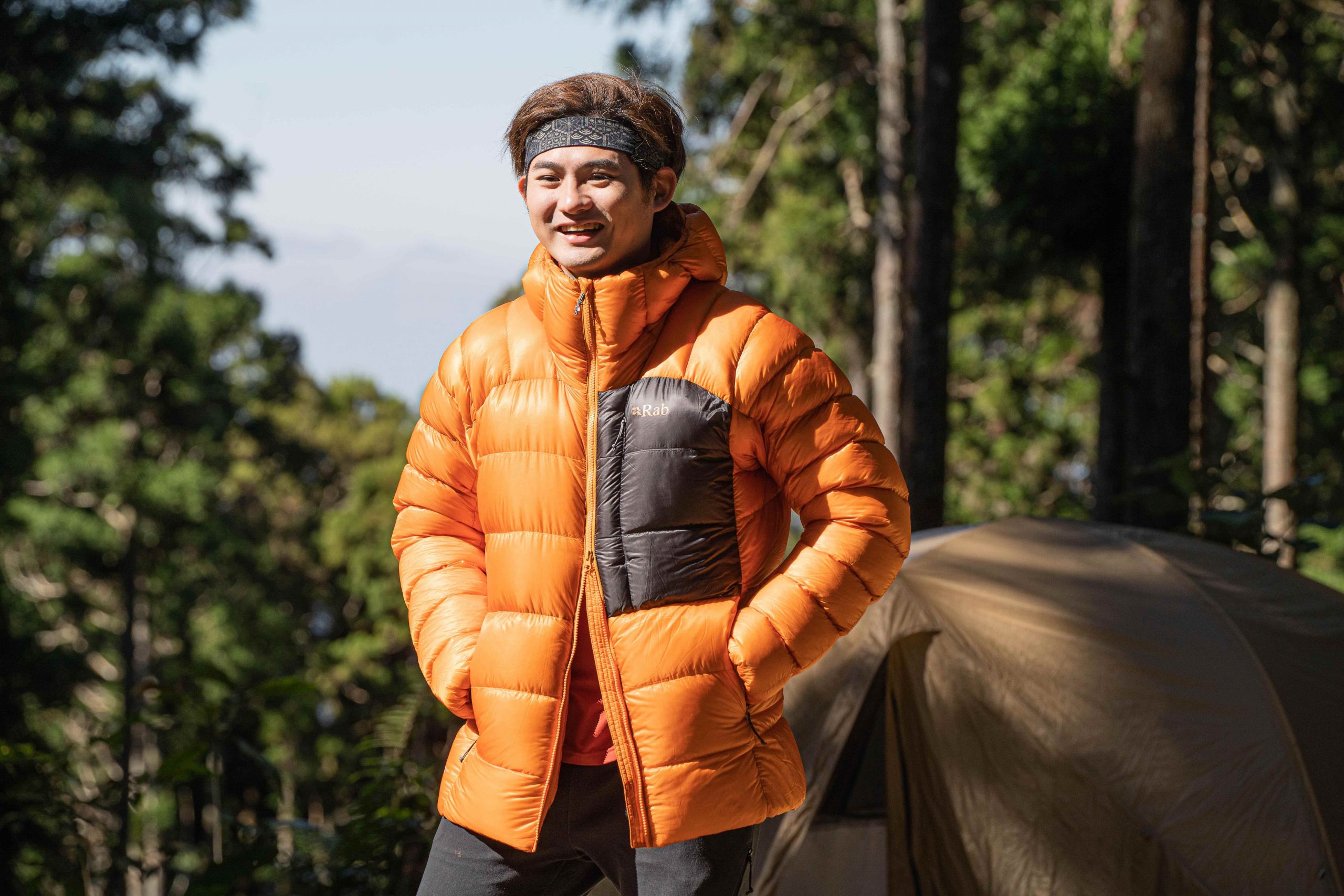 同為登山過來人的圓糖,雖然沒有太多痛苦的登山經驗,但致力於帶領更多人體驗戶外美好的他,看過身邊的人常遇到的幾個問題,他跟我們分享該如何避免及建議,登山活動衣著選擇首重:保暖、體溫調節、防風、防水「中層衣物,我會建議選擇像 Rab Mythic 這種既能保暖又防潑水的羽絨衣。」圓糖接著分享洋蔥式穿搭的優勢,今天實著的 Rab Mythic 搭載 Pertex® Quantum 防潑水機能完全解決了一般坊間羽絨衣不防水的痛點。