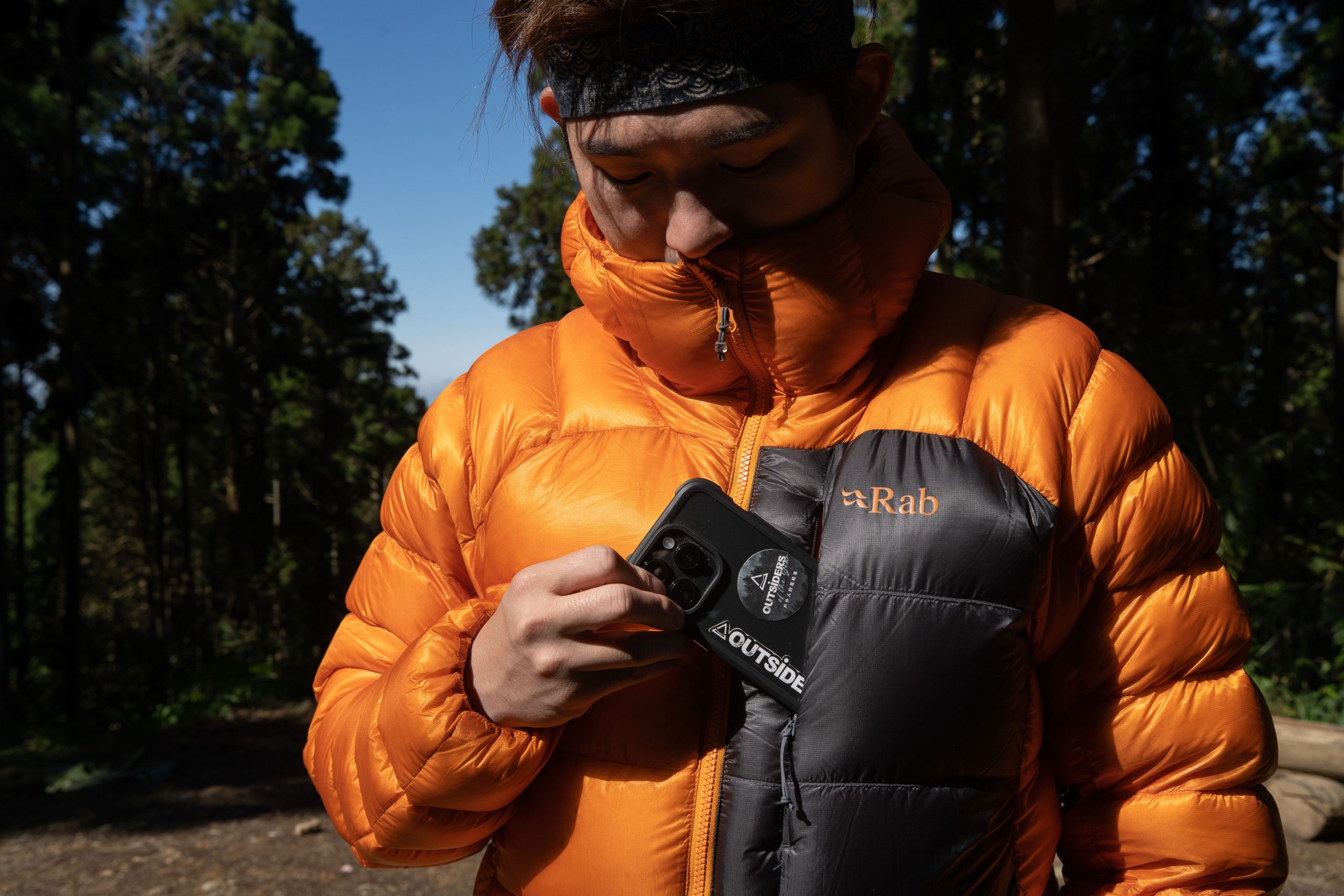 ▲Rab Mythic Ultra Jacket 胸前口袋的設計,能放進手機,提供保暖層,即便在低溫險地,也不至快速耗電。