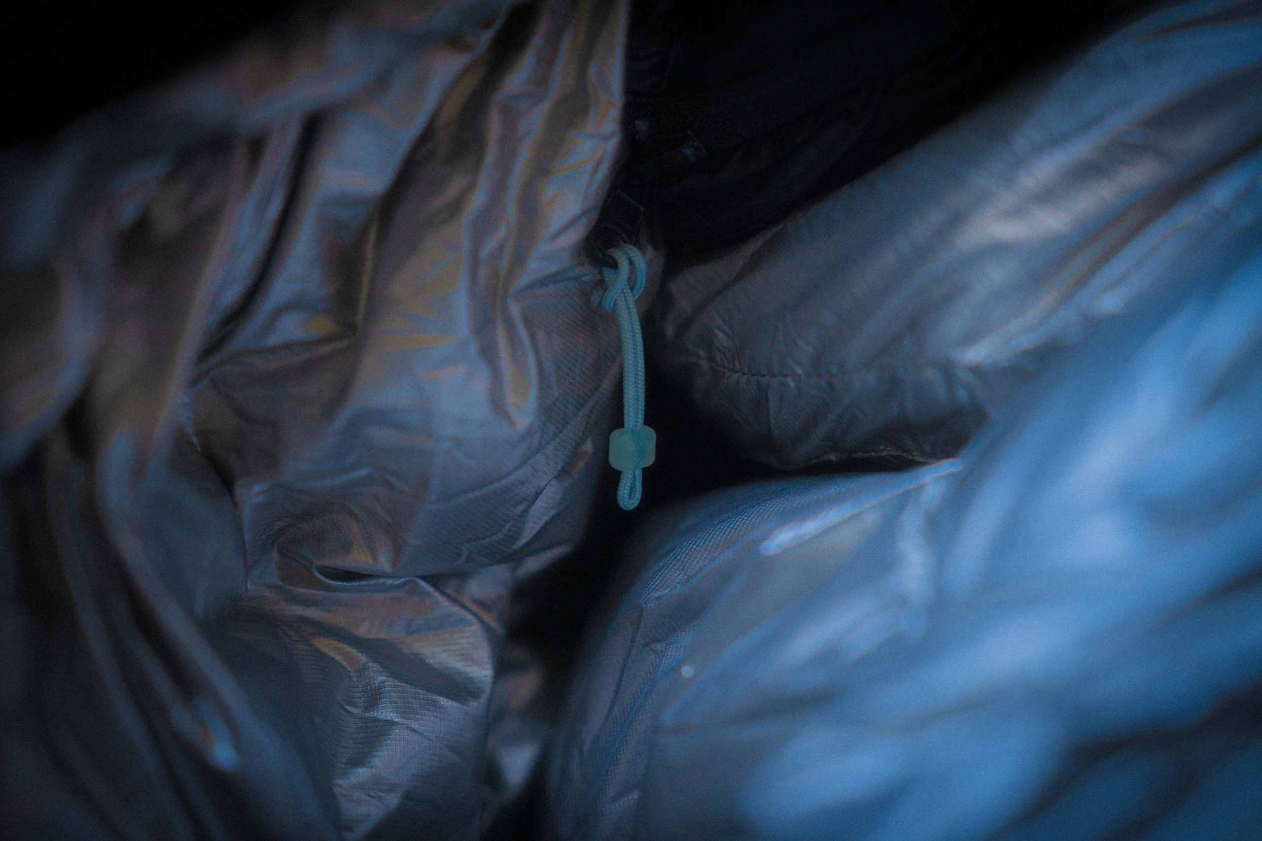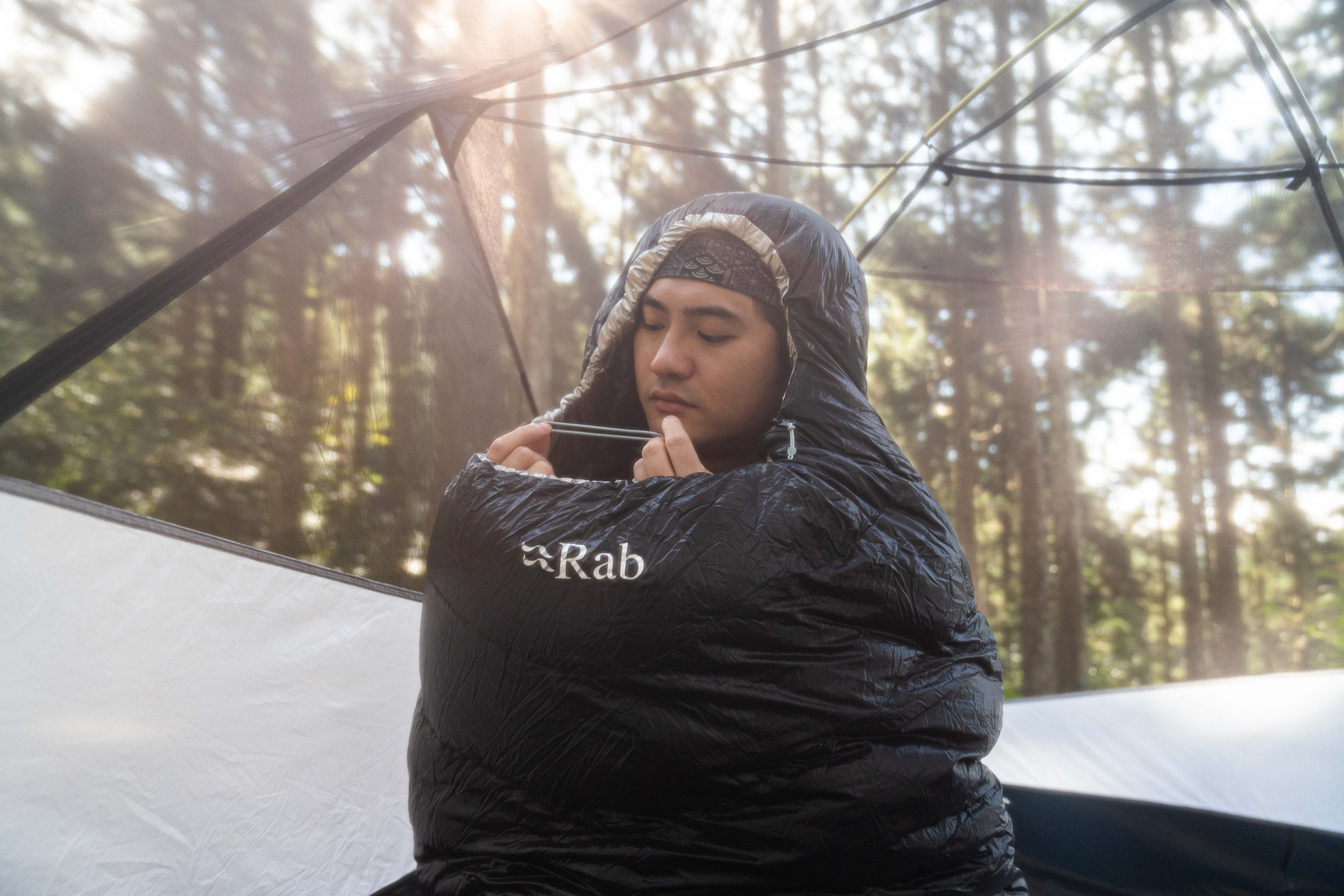 ▲Rab Mythic 羽絨睡袋搭載符合人體工學設計的內領和帽緣,圓糖:「這款羽絨睡袋的設計很貼合身型,幾乎不浪費任何一點空間。」