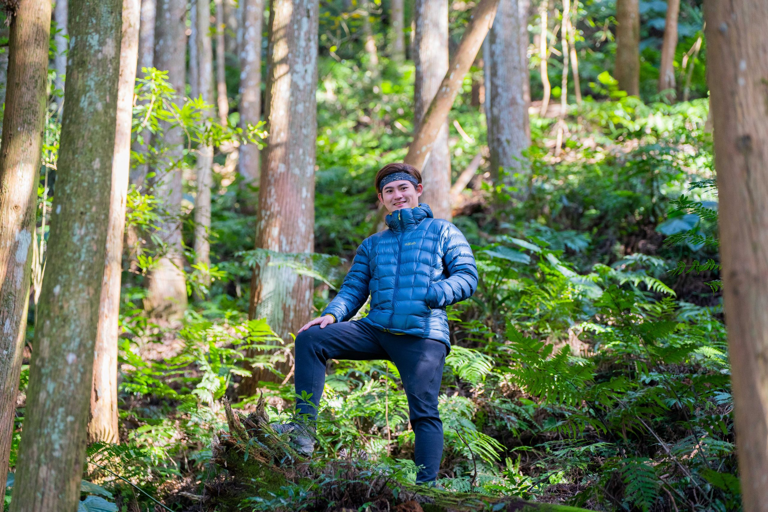 「今天實著 Rab Mythic 超暖,也很符合我在山上喜歡穿著的色系。」圓糖接著分享今日實著 Rab Mythic 羽絨家族的實際體驗。我們坐在倒木休憩,圓糖指著遠方的花朵說:「你在山上看到花是什麼顏色,我就穿什麼顏色!」除了自己本身給人的暖男形象,他也特別喜歡在戶外穿著飽和度較高的暖色系,除了在戶外能更容易辨識外,在影像拍攝上,也較能從畫面中脫穎而出。