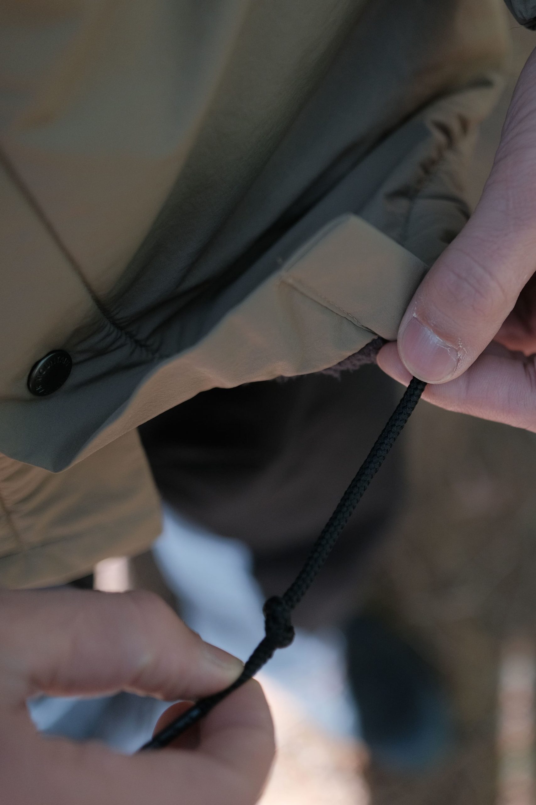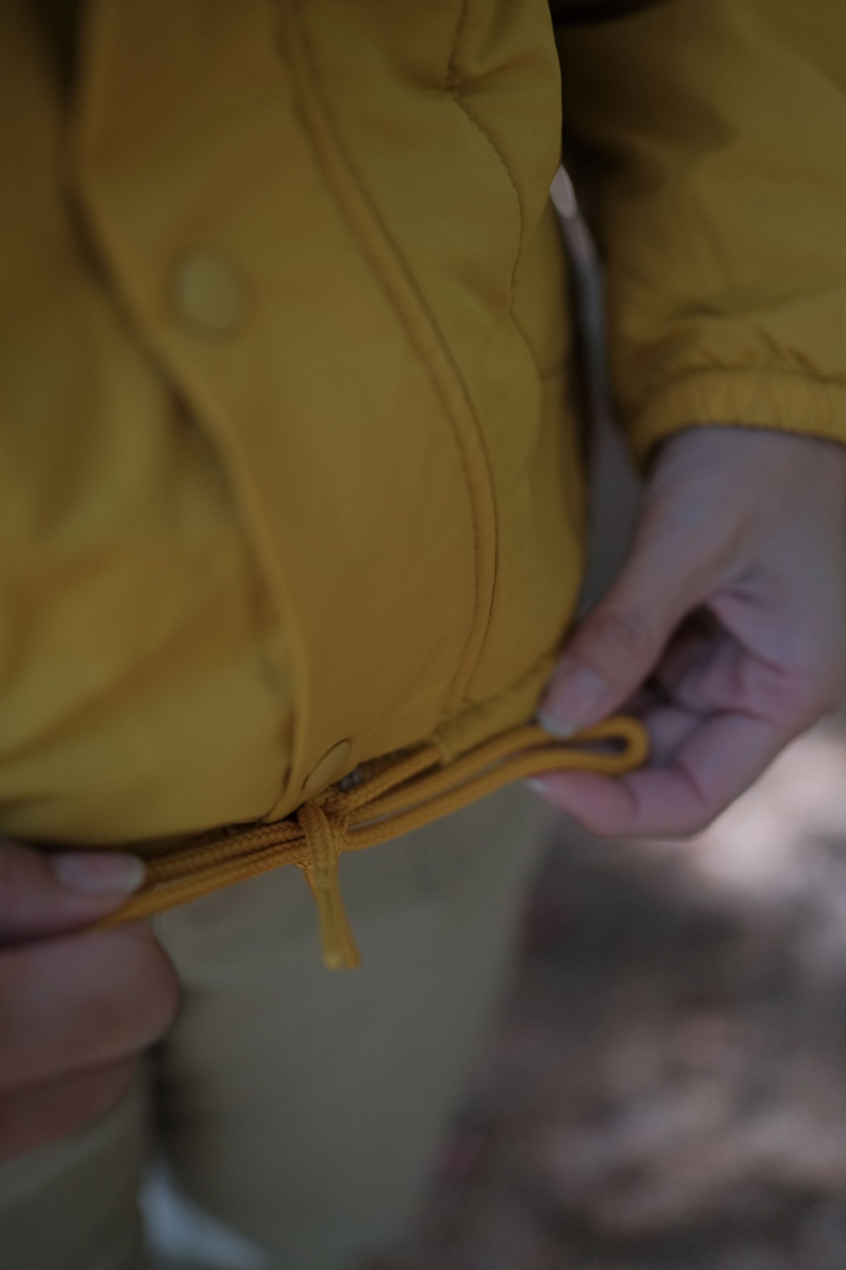 ▲ 男女裝外套皆採抽繩可調式下擺及縮口手袖設計。活動時可以稍微往上拉固定袖口,下擺也不容易隨著動作移動,冷風不會趁隙而入,保暖更升級。