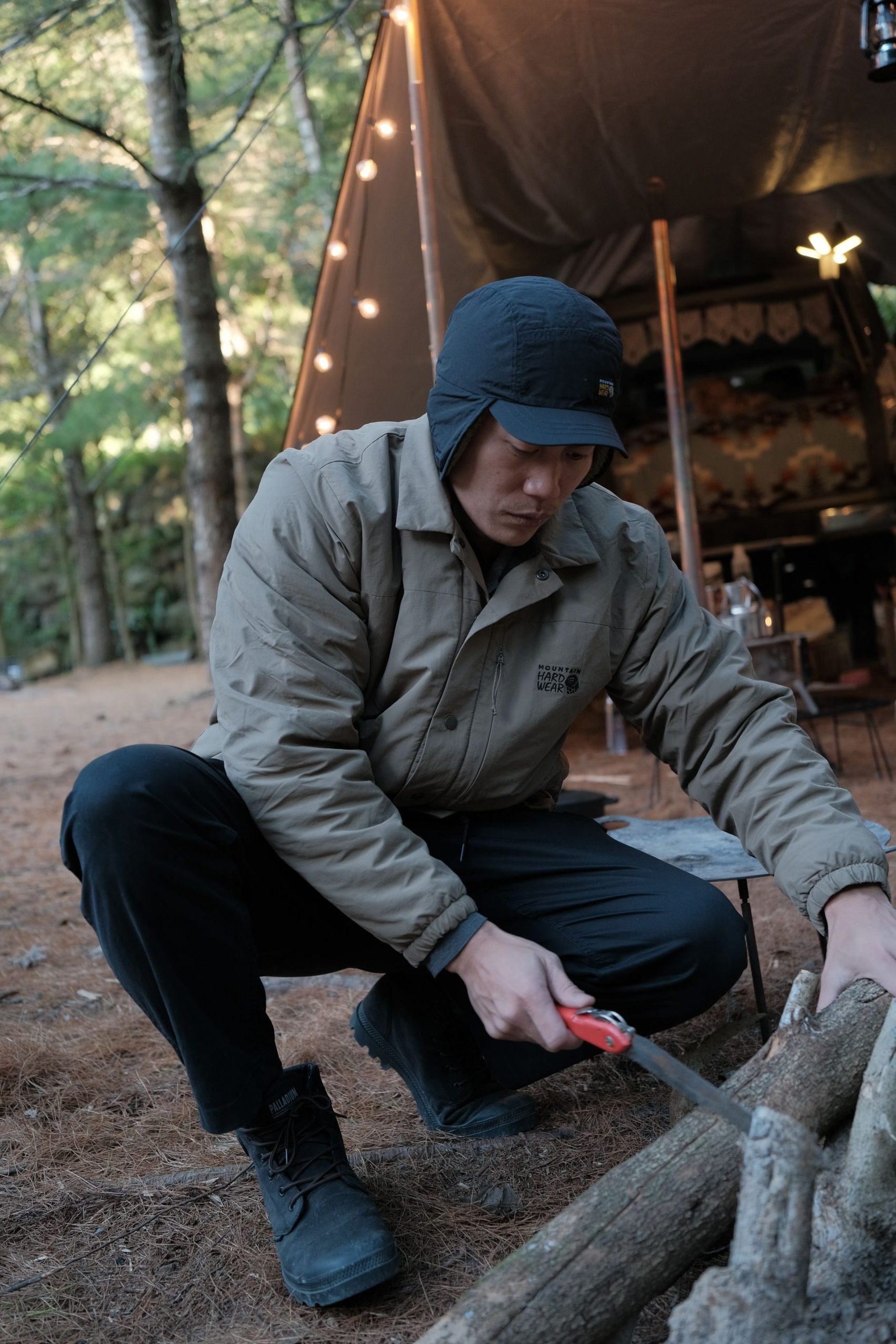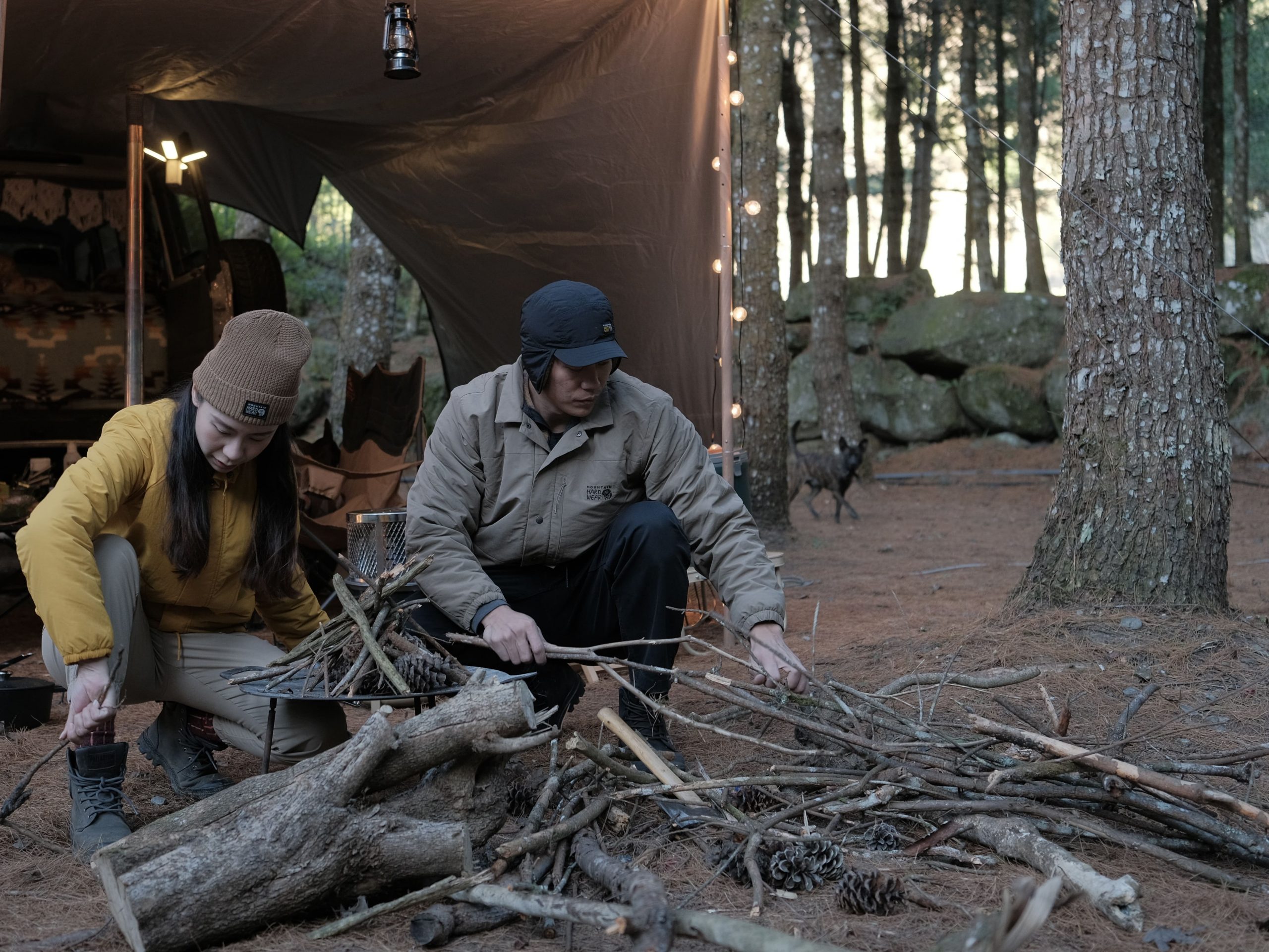 歷經極為寒冷的聖誕露營之後,隔週的跨年,我們到了 1280 公尺海拔更高的林道野營,毫不猶豫帶上 Mountain Hardwear HiCamp™ 系列,已成為我們冬季露營不可或缺的保暖的機能風格單品。
