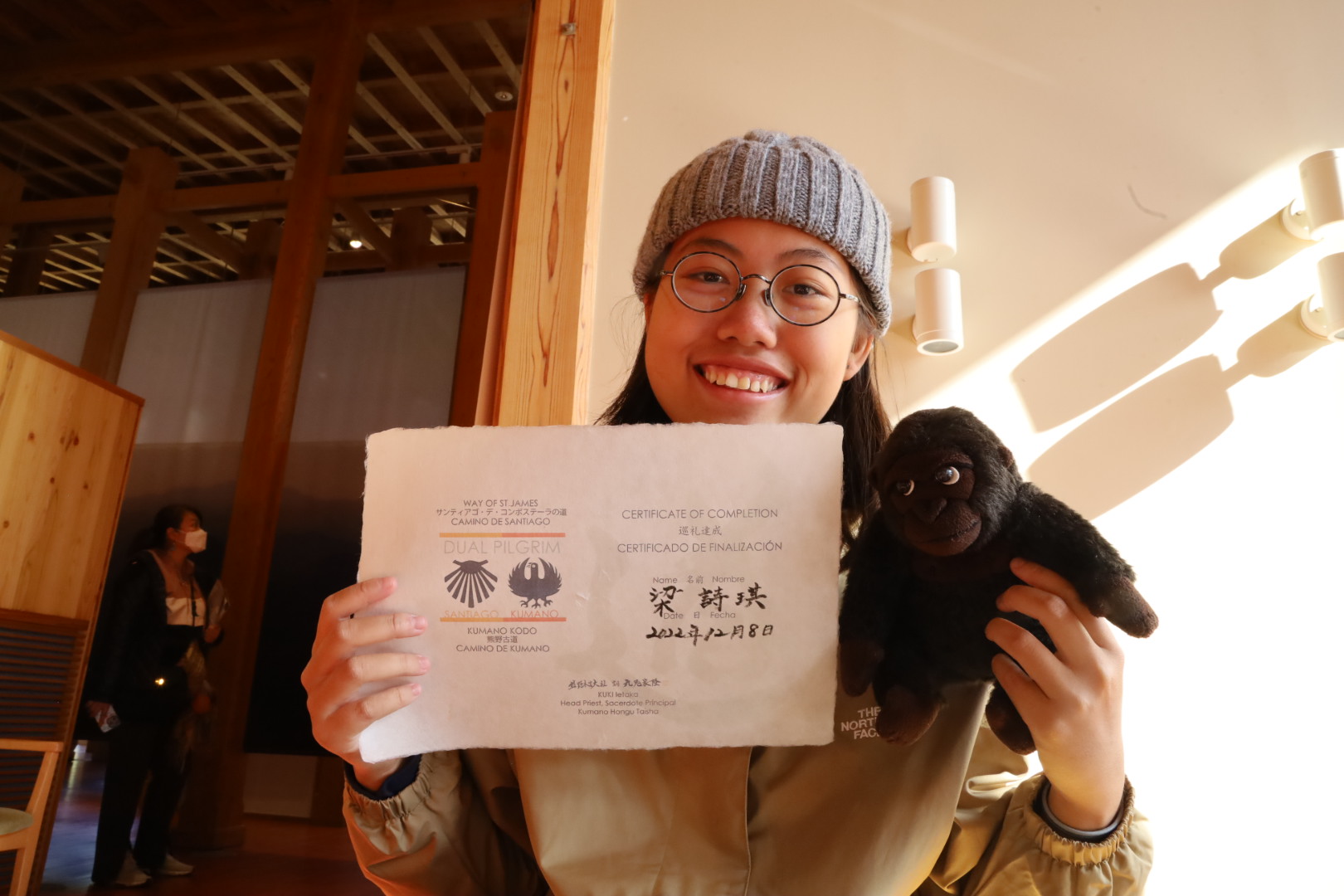 「我選擇的是熊野古道中路,會行經三大神社。我是在 2022 年 12 月去的,那時日本已經解封,我以為步道會很多人。沒想到,沿途上我幾乎沒有遇到人,整趟路程都是我一個人走。感覺跟西班牙的經驗很不一樣。」