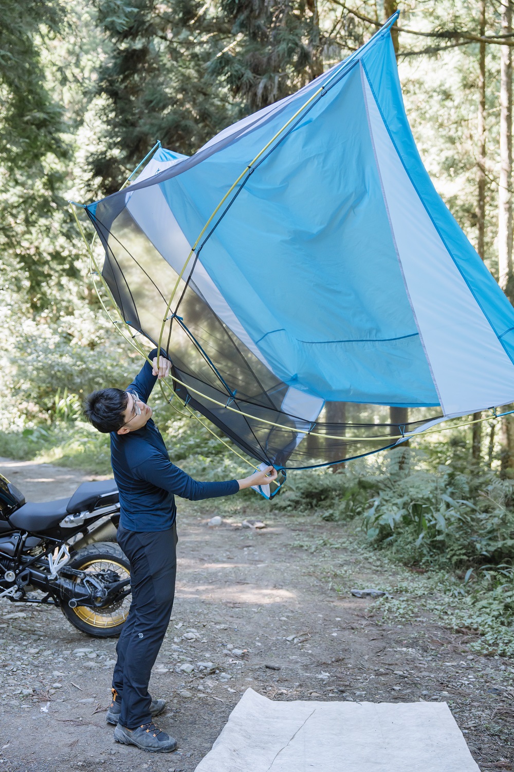 因此,在使用多年後,我開始萌生來頂「輕鬆休閒大空間自立帳」的想法,畢竟不是每趟行程都是去極端天氣與地形操爆帳篷的路線,而可能是簡單避風的百岳路線,甚至從未嘗試過、也想嘗試看看的「機車露營」——結合我人生最愛的兩個元素,重機與山。