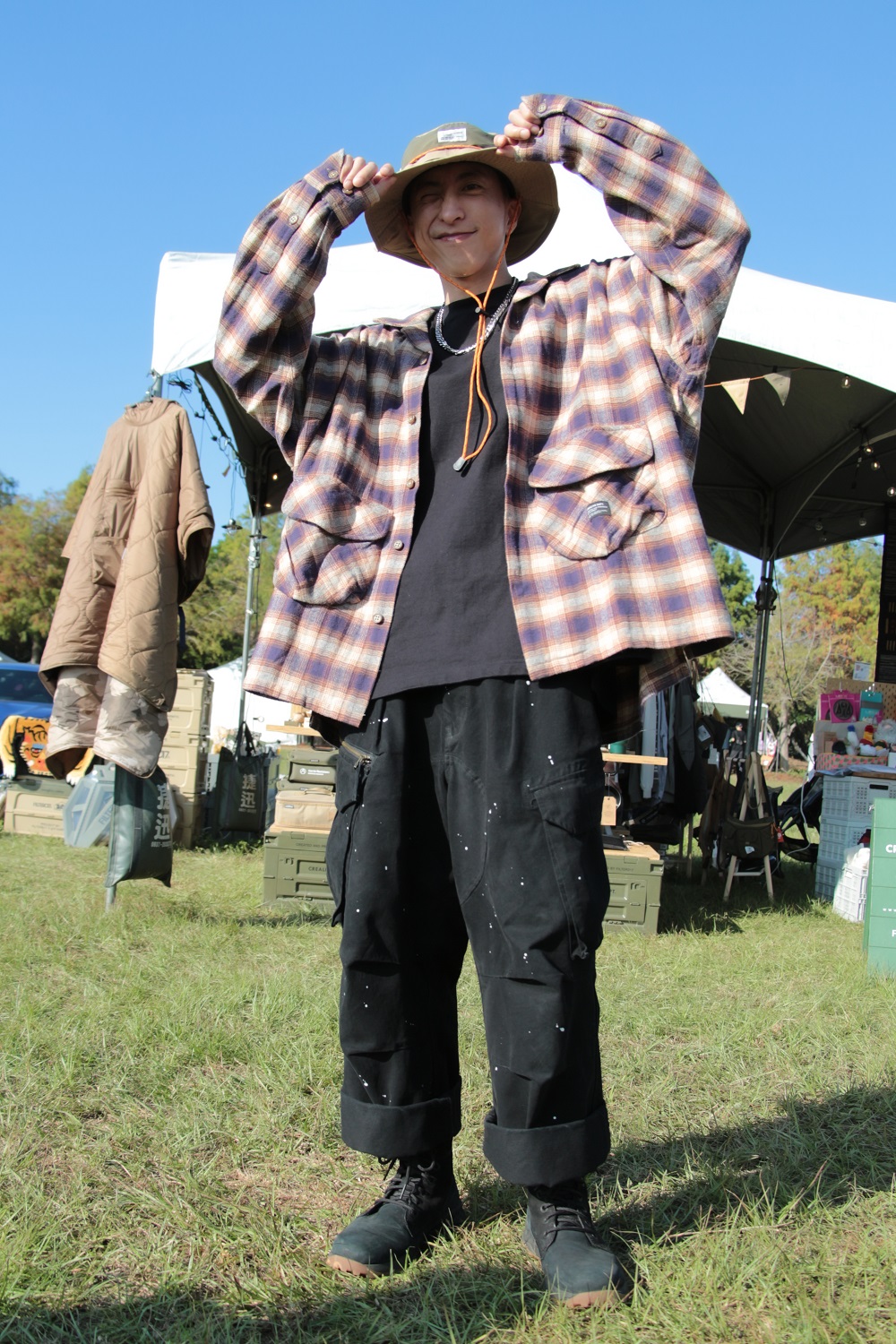 本次《漂遊者森林音樂祭》捕獲的穿搭現場可謂風格多元,橫跨 outdoor、工裝、嬉皮、古著、街潮、民族風等,各自派別皆有擁護者。街訪穿搭的樂趣在於:瞭解型人們如何將自己喜愛的風格、元素、概念,透過巧思、細節呈現,讓整體穿搭貼近自己性格的模樣,相當有意思!