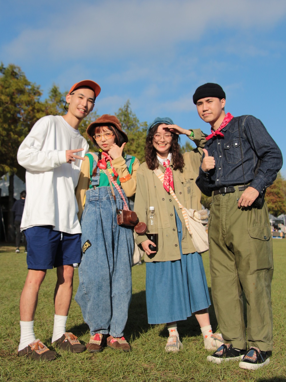 ▲由左⾄右:『視短褲為⾳樂季聖物』的友⼈1、『來看⾃⼰服裝作品展⽰』的友⼈2、『舒服好走很重要』的友⼈3、『Uncle Jude’s Represent』的友⼈4