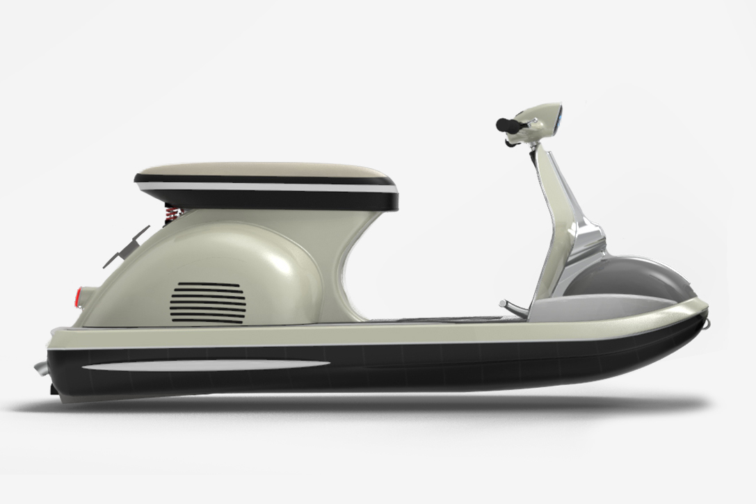 Vespa 偉士牌機車一直是義大利的驕傲,從 1946 年誕生第一台偉士牌之後就一直盡量保持原始的經典設計外觀,同為義大利人的設計師 Pierpaolo Lazzarini 以 Vespa 偉士牌外型為概念,設計出了可在水上馳騁的水上摩托車。