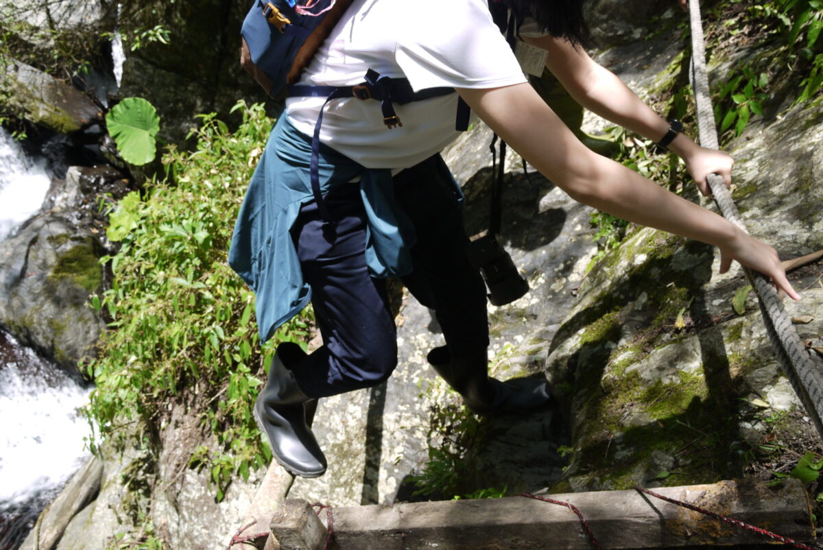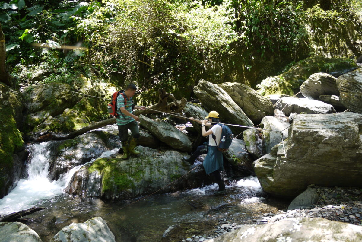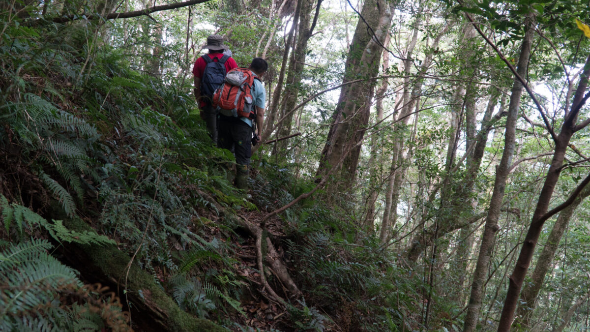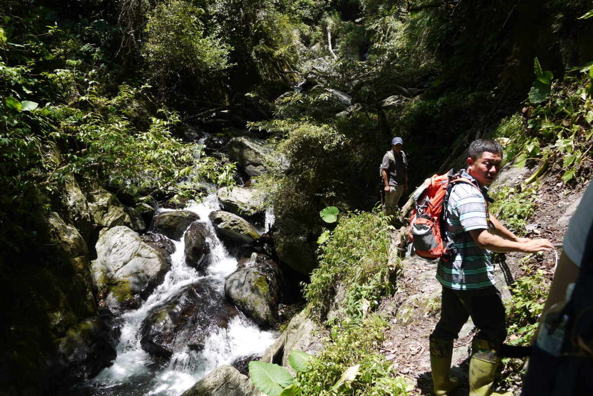 跟著紀松廷、林柏杳的腳步,走進杳無人煙的深山。腳下盡是長及膝蓋的箭竹、野草,沒有路跡可言,一不小心,可能就會迷失方向,甚至掉下一旁的懸崖。
