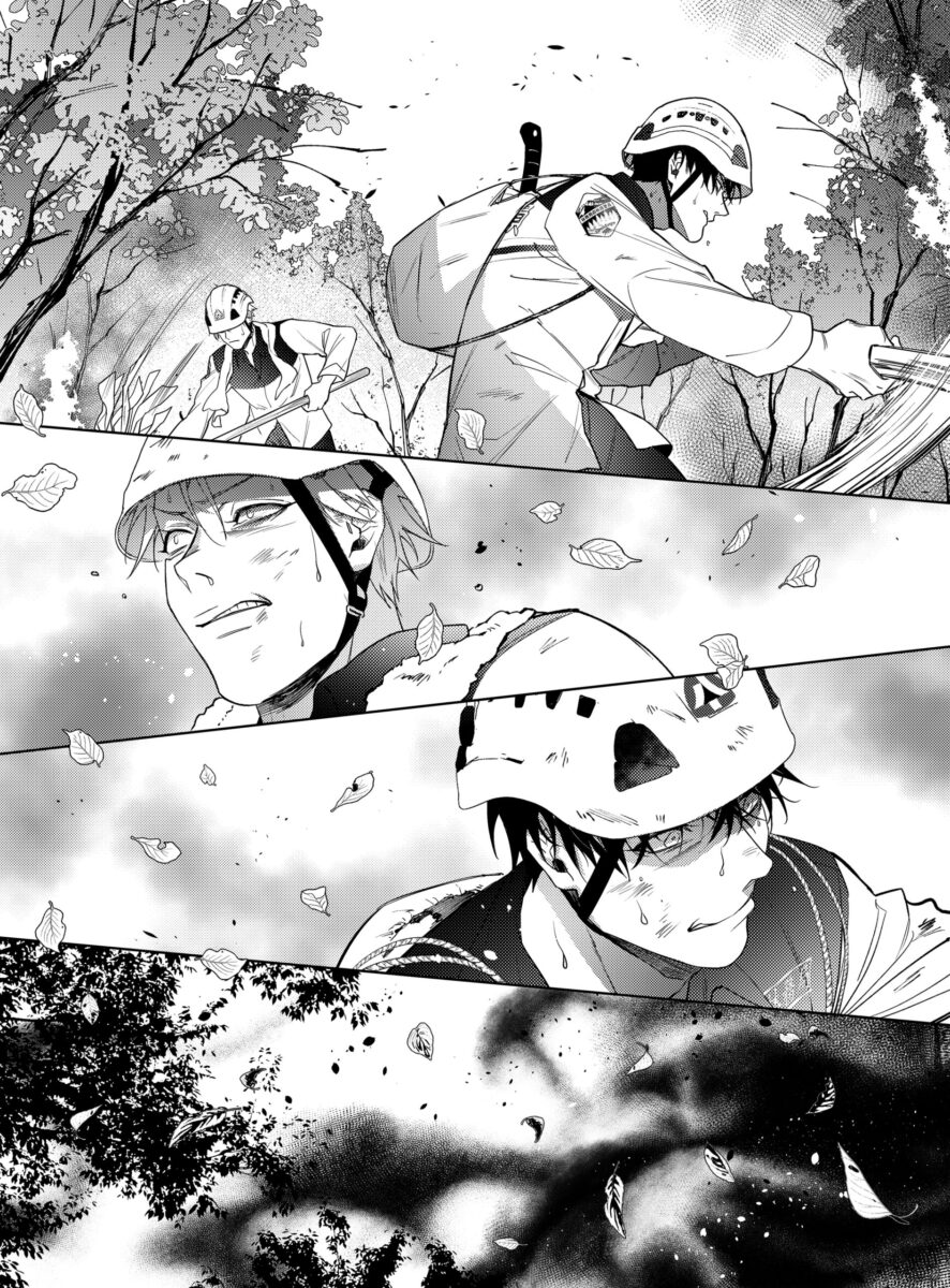 林務局不僅協助艸肅取材,也幫忙檢視故事大綱、畫面呈現等細部內容,艸肅語帶感激地說:「真的很謝謝他們,雖然這與我過往的創作經驗有很大的差異。以前都是我想好故事情節、人物的特質與性格,就可以開始畫。但創作《尋山人》時,我必須先取材,無論是實際跟著林務局走進山林也好,還是我自己找各種資料也好,得做相當多功課,我甚至還會去聽相關講座。接著要勞煩林務局幫忙看故事內容是否有與現實出入之處,最終完稿也會讓林務局過目,確認沒問題我才會上架。」