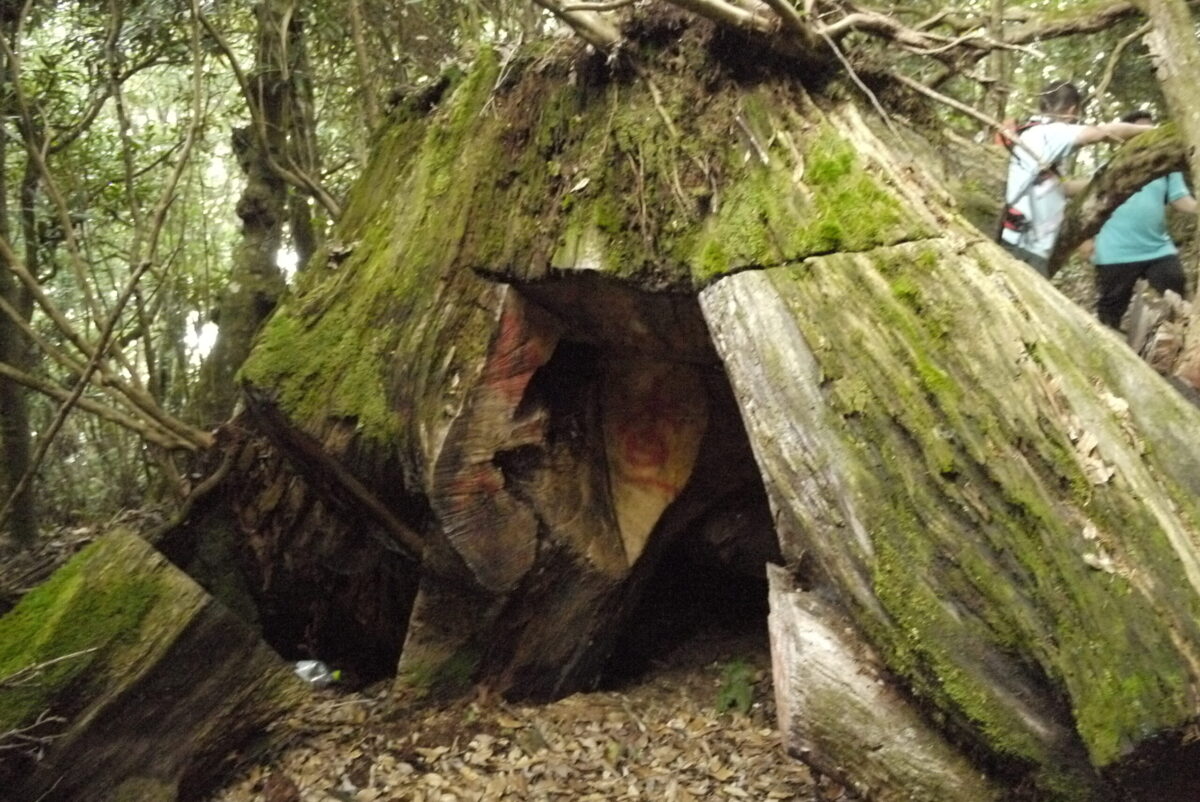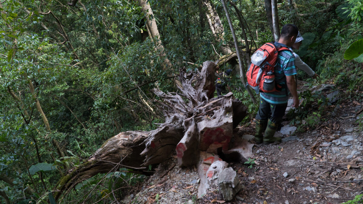 「當我跟著巡山員來到山老鼠犯案現場時,看到那呈現詭異樣態的巨木,我心裡就是這麼想的。山老鼠會將珍貴木種,尤其樹瘤,切成一塊一塊的,再以人力方式運出去。所以被山老鼠盜伐的樹木,就會長得坑坑疤疤的。我說,那很像被凌遲。」艸肅以些許沉重的心情說完這段話。