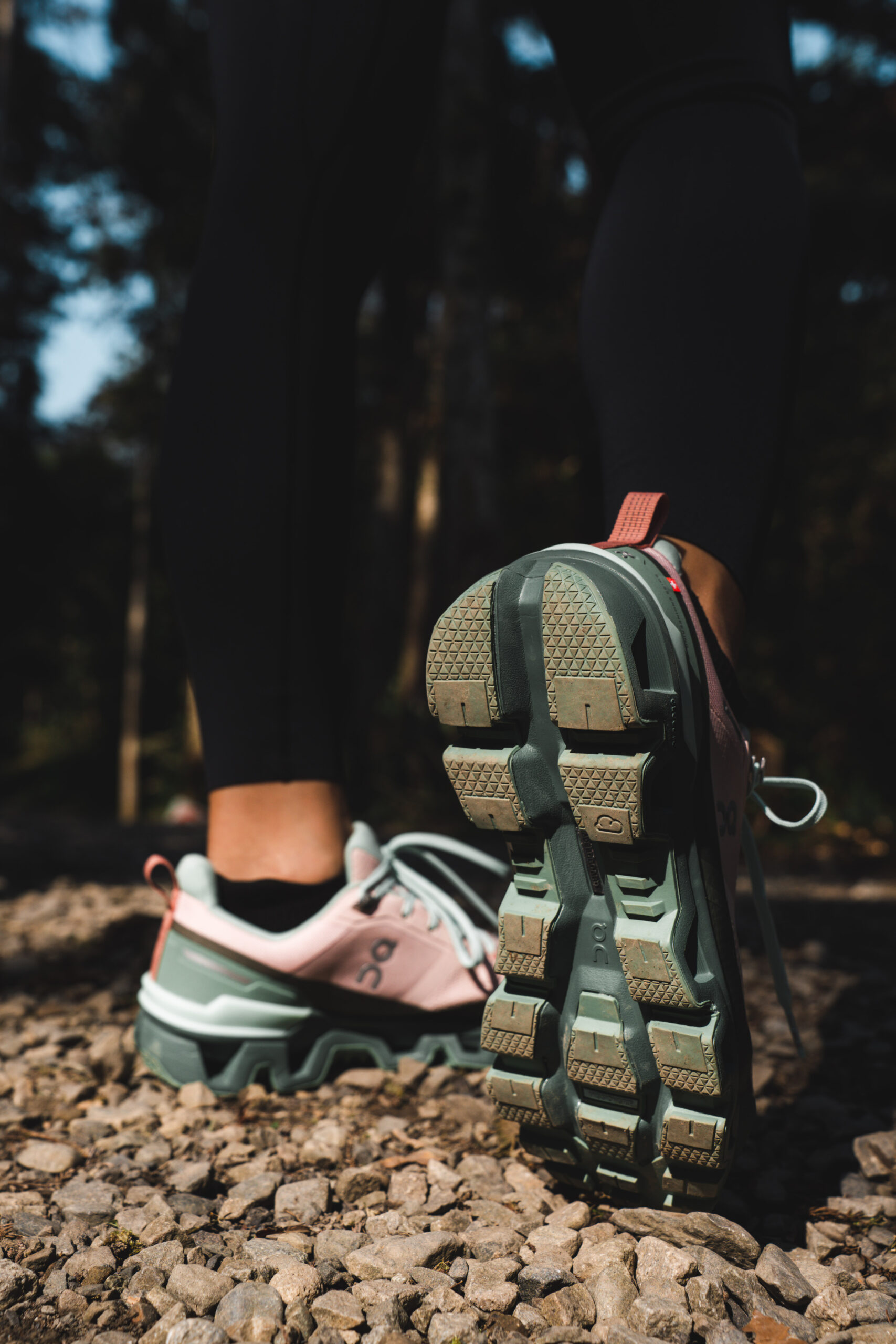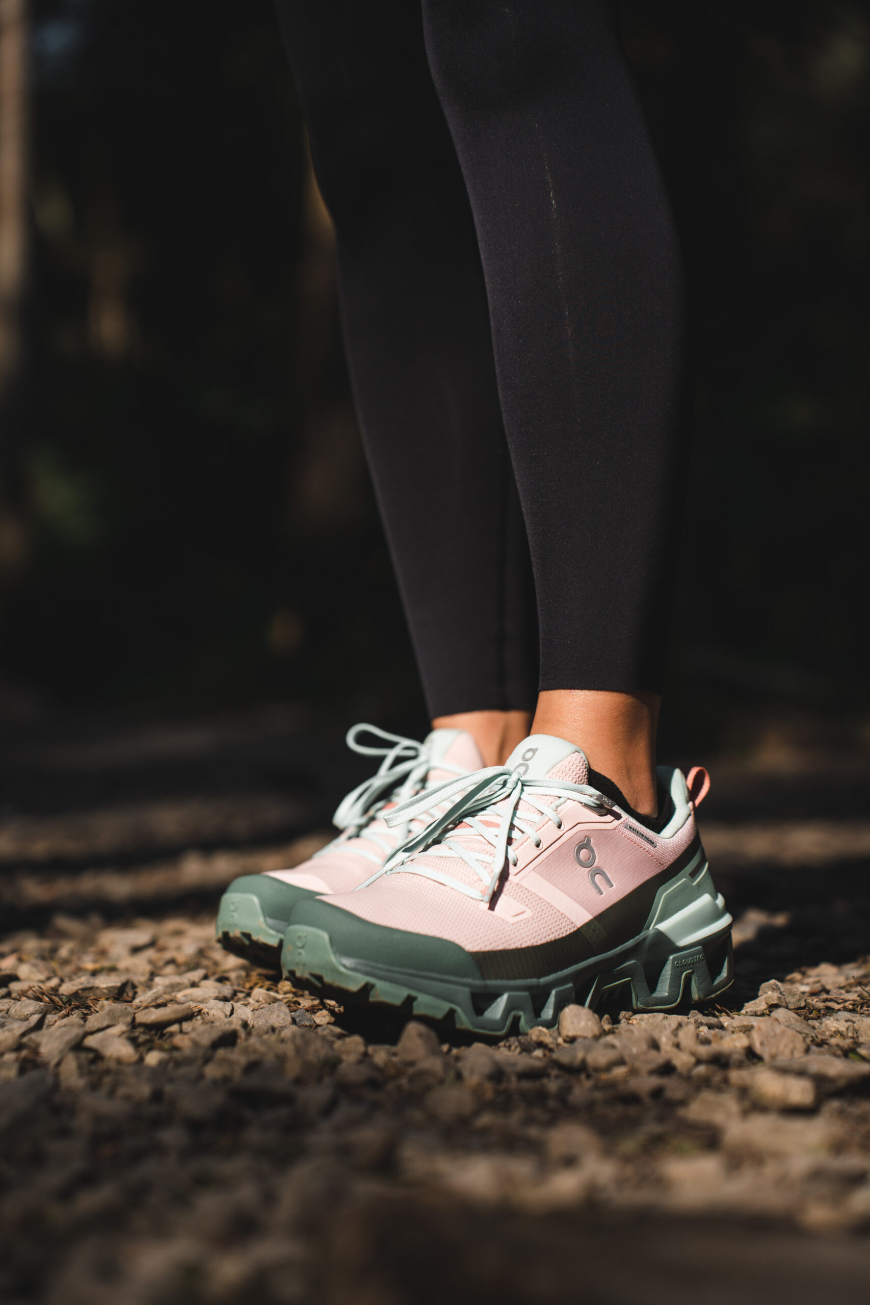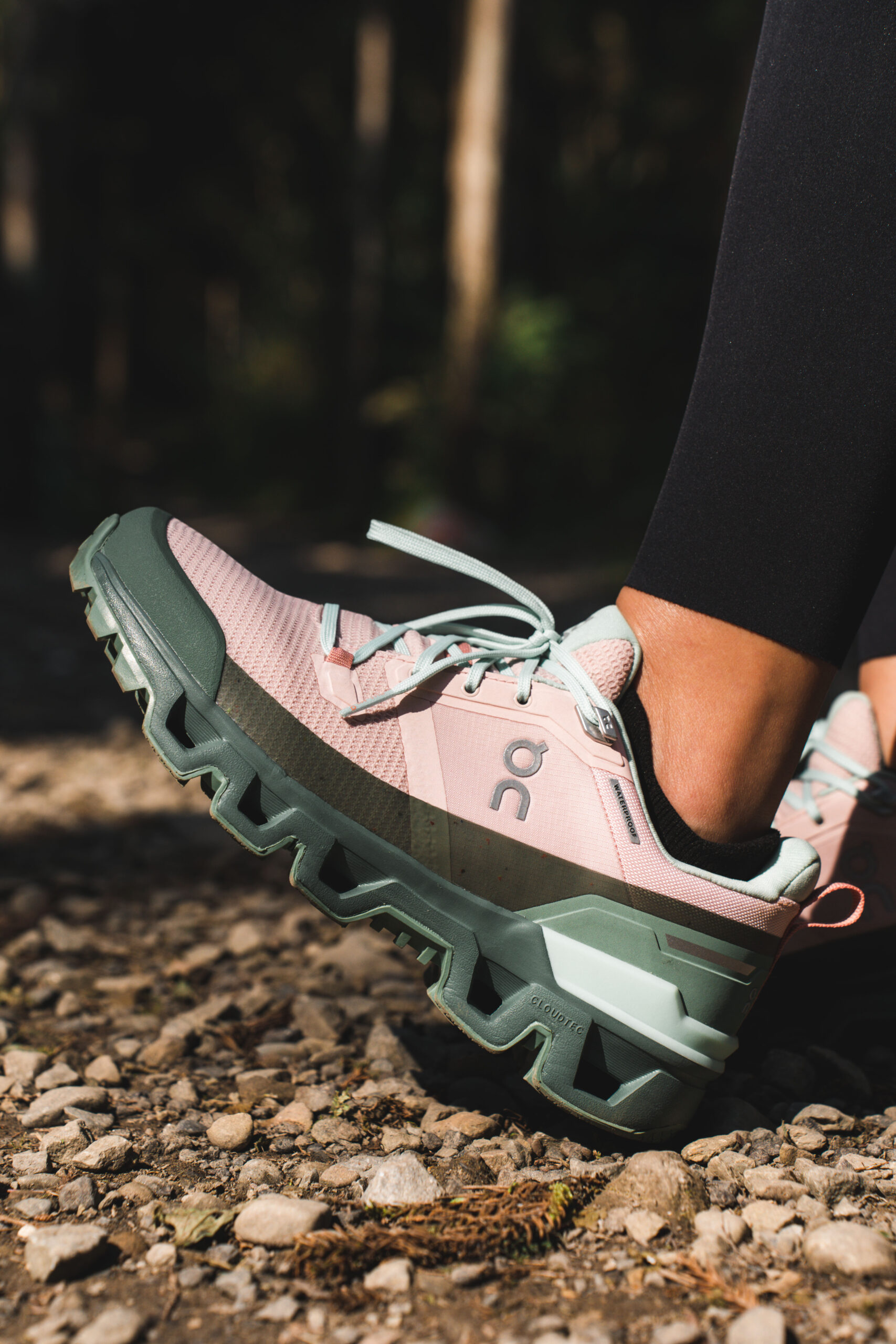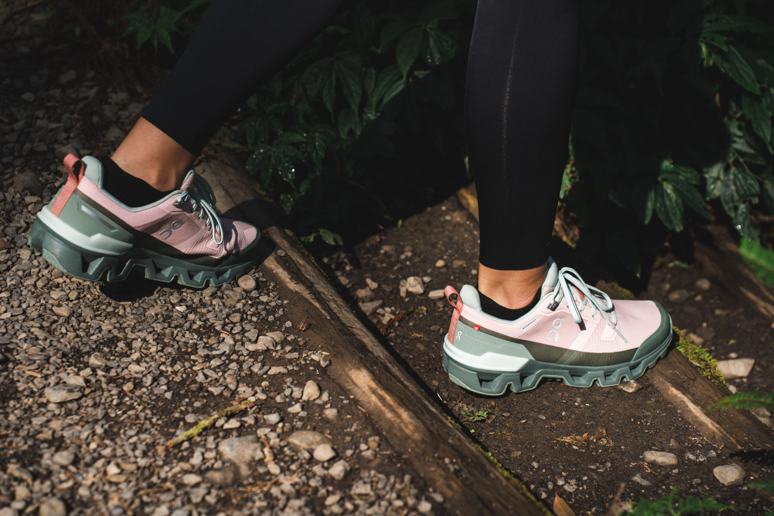 ▲ 薇安腳上這雙 On Cloudwander,擁有全地形適應的性能,不管是踏足石階、樹根、土壤皆能提供足夠抓地力,亦搭載品牌 20% 再生防水科技,即便用力踩踏溪水也依然保持足部全天候乾爽。