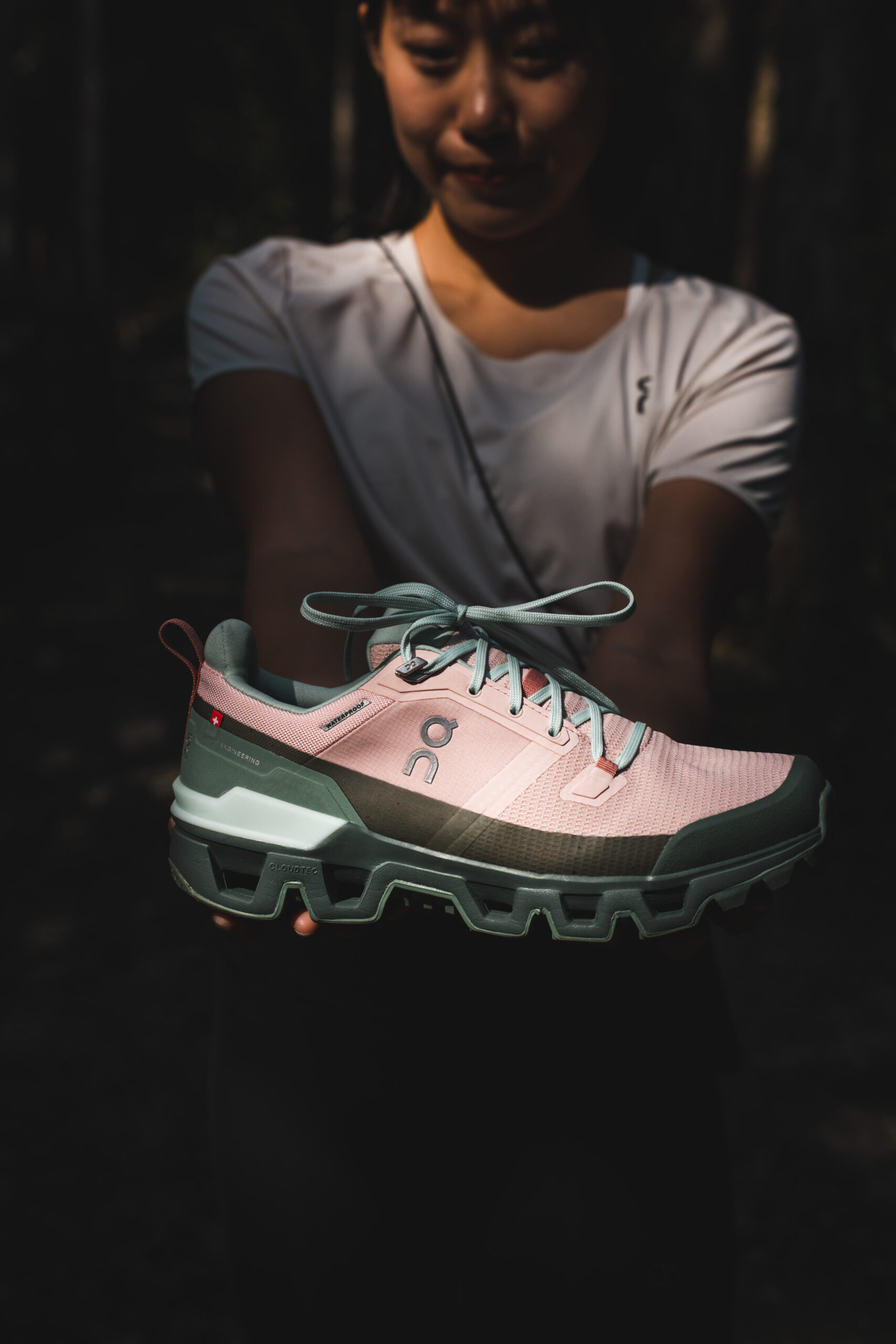 「即便我在水邊用力踩踏,鞋子都沒有濕,在鞋面上的水馬上成了大水珠流掉。」On Cloudwander 鞋舌和鞋面相互連結的設計,提供更強悍的防水性能,不致從縫隙間滲入,此外 On 昂跑獨家的 20% 再生防水科技,也與薇安對環境永續的理念不謀而合。