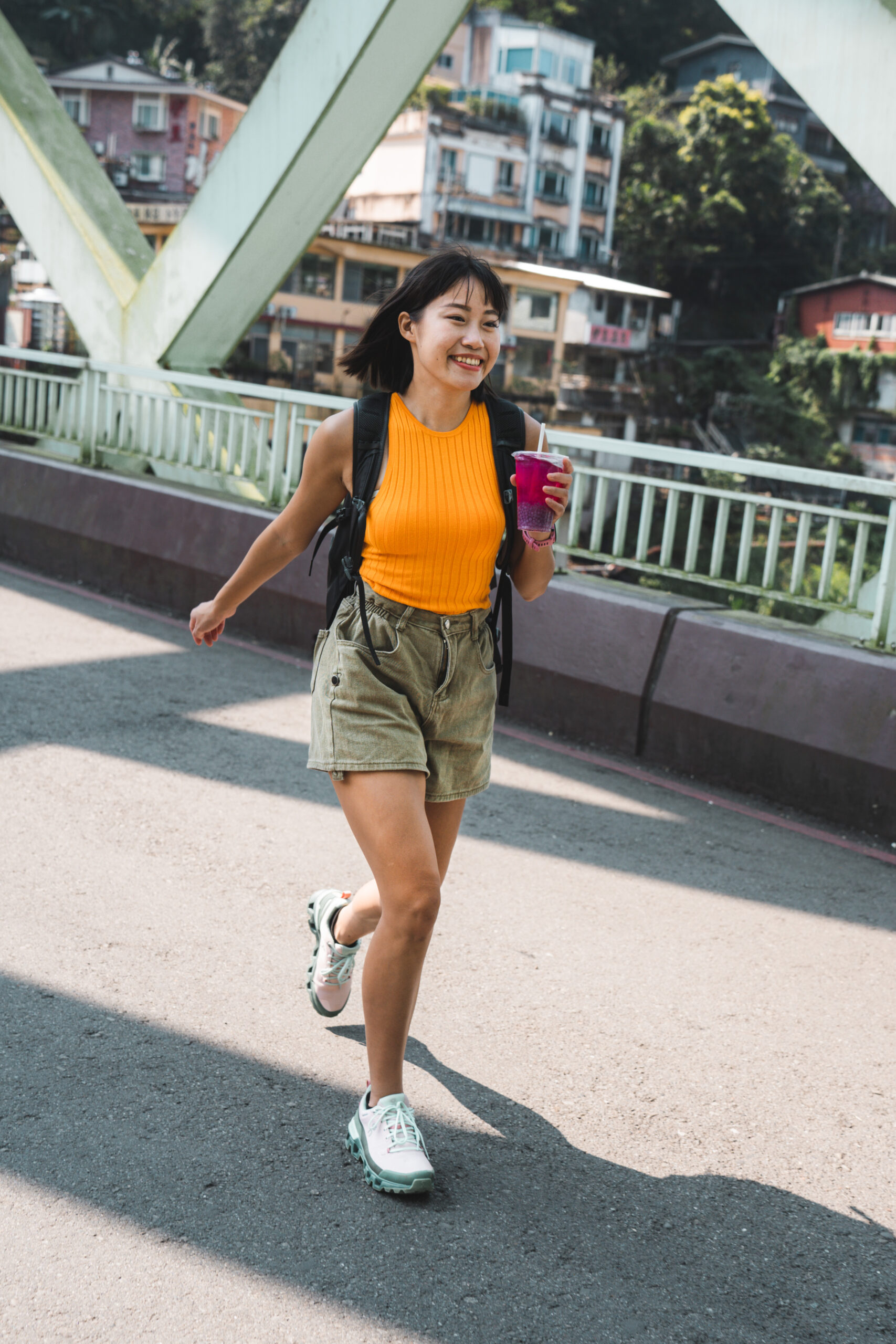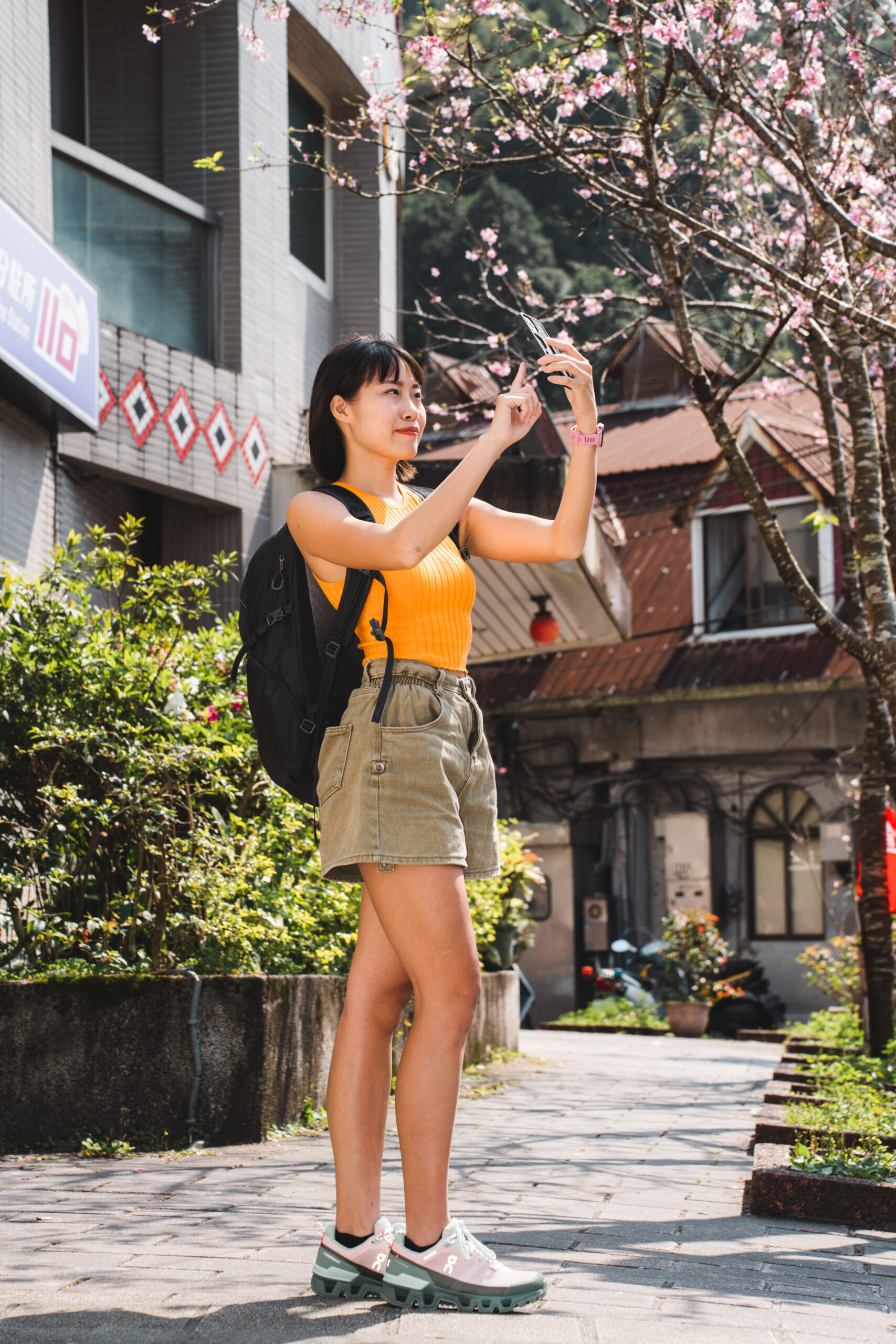 稍早走在烏來老街上,粉綠色系的搭配青春洋溢為暖陽春日增添色彩,On Cloudwander 也適合應用在輕旅行及日常生活等各種不同的穿搭情境中,「面對台北經常下雨的濕漉天氣也很適合喔!」身為機車族的薇安也加碼分享,在台北生活遇到雨天困擾應對方針。